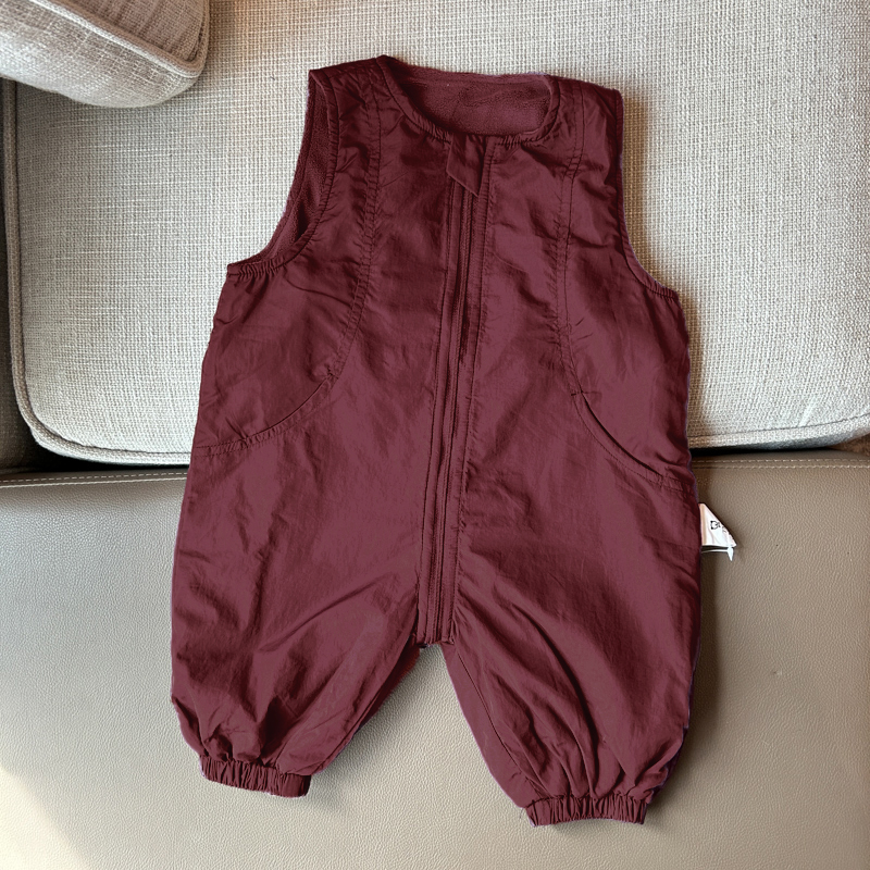 无袖新款三防拉链背带裤男女童外穿裤子时尚休闲秋冬季加绒连体衣