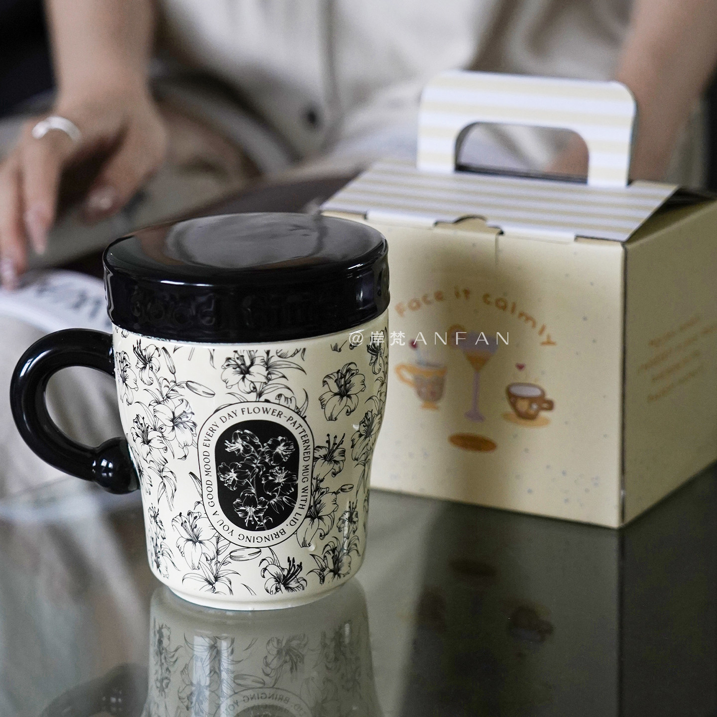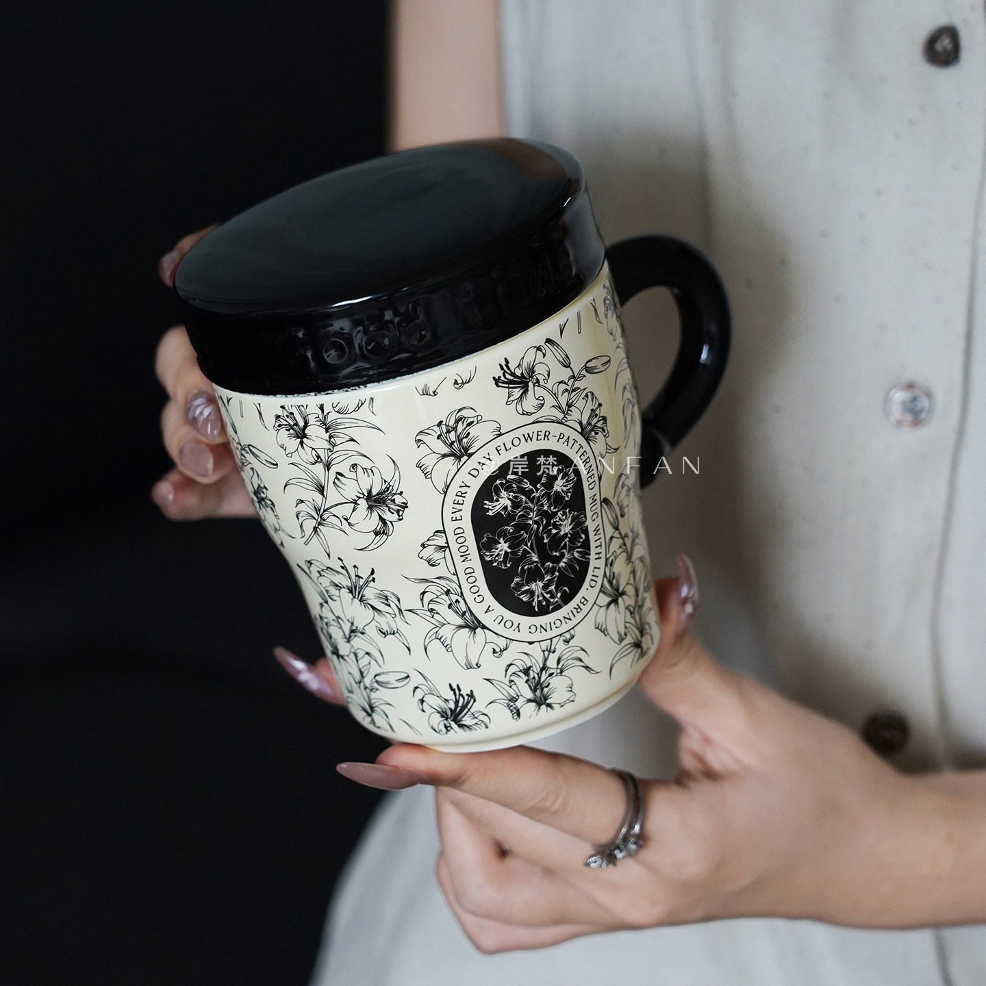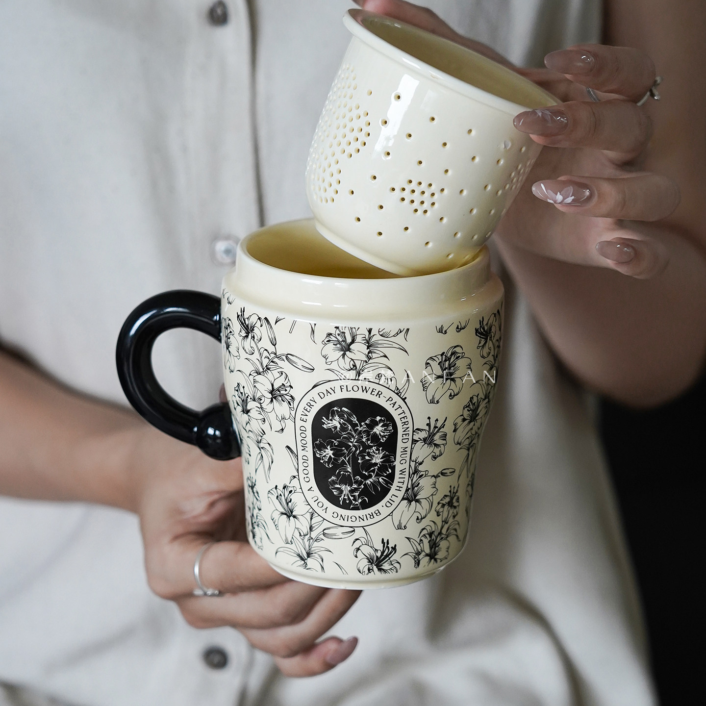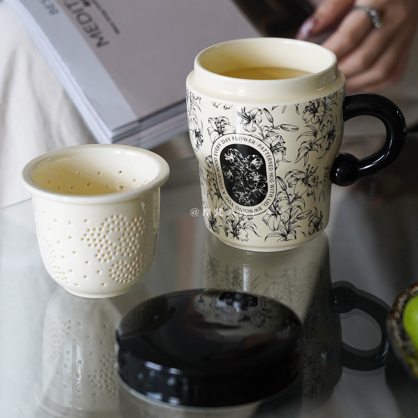岸梵创意带盖带茶格茶水分离陶瓷杯家用高级感马克杯咖啡杯泡茶杯