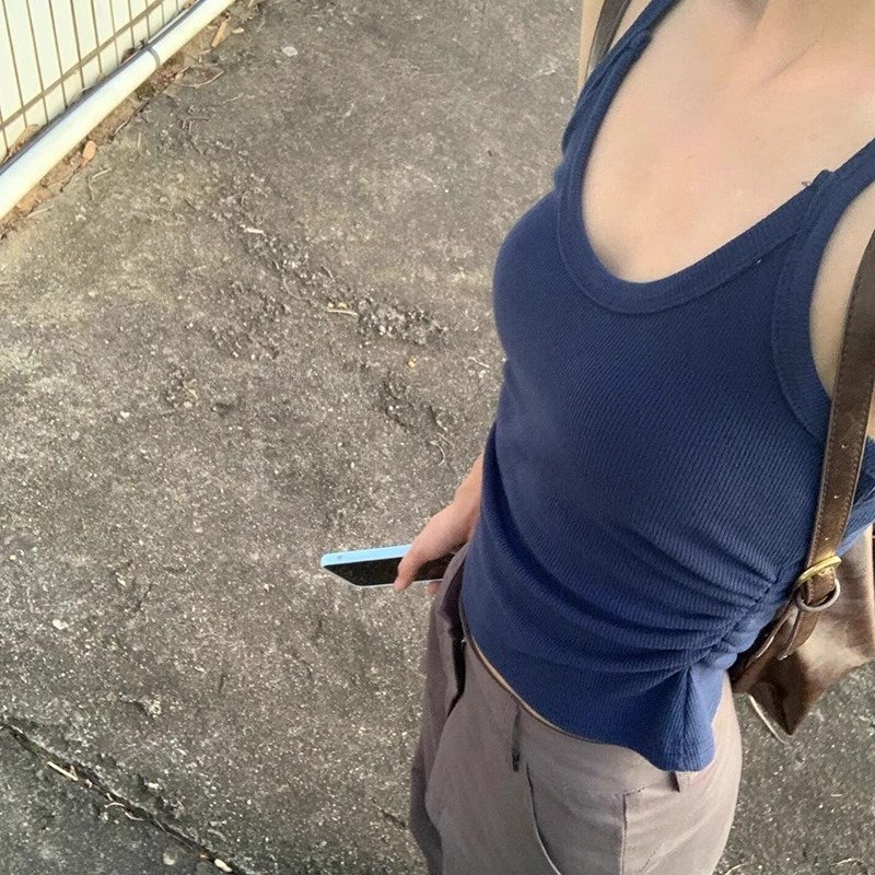 美式辣妹小吊带女春夏季小众高街收腰褶皱背心修身设计感无袖上衣