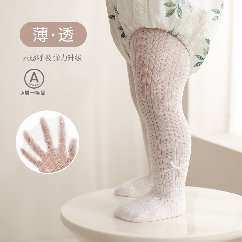 nemobaby夏季女童打底裤女宝宝网眼薄款连裤袜婴儿蝴蝶结公主袜裤