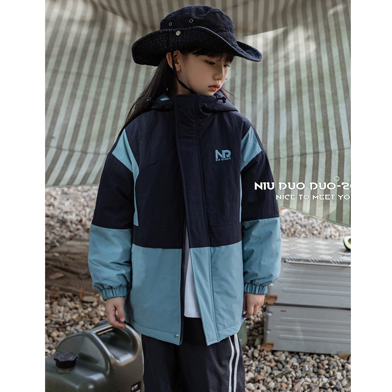 牛哆哆童装冬季新款男女童韩版拼色连帽夹棉冲锋衣外套潮7622