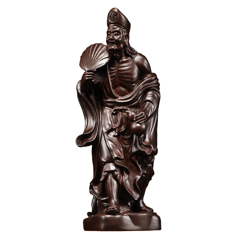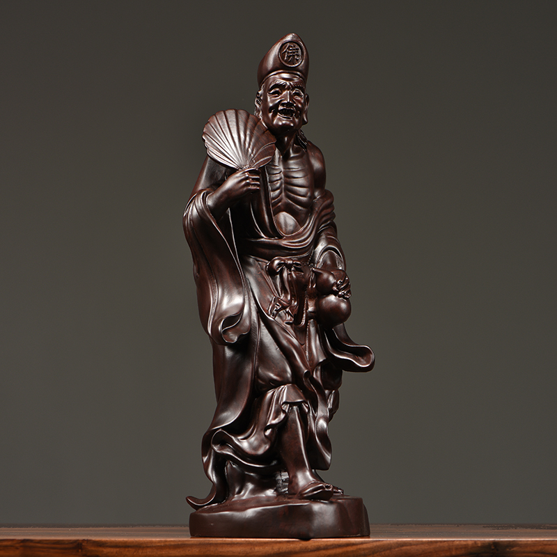 黑檀木雕刻活佛济公实木质摆件降龙罗汉佛像家居客厅装饰摆设工艺