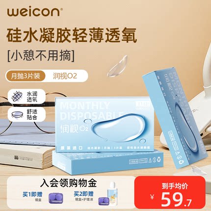 卫康润视O2硅水凝胶月抛3片近视隐形眼镜水润透明片正品高清