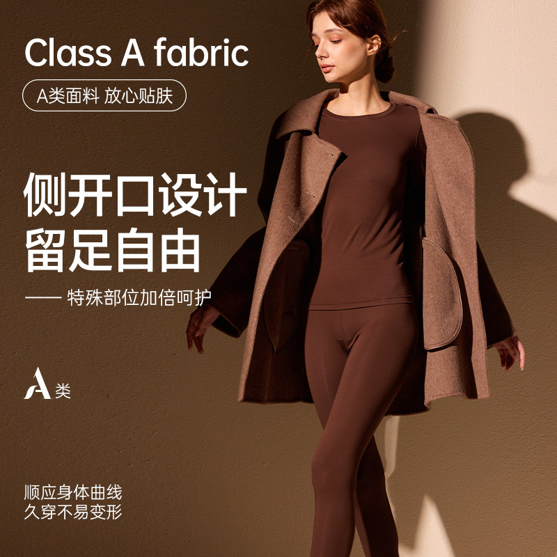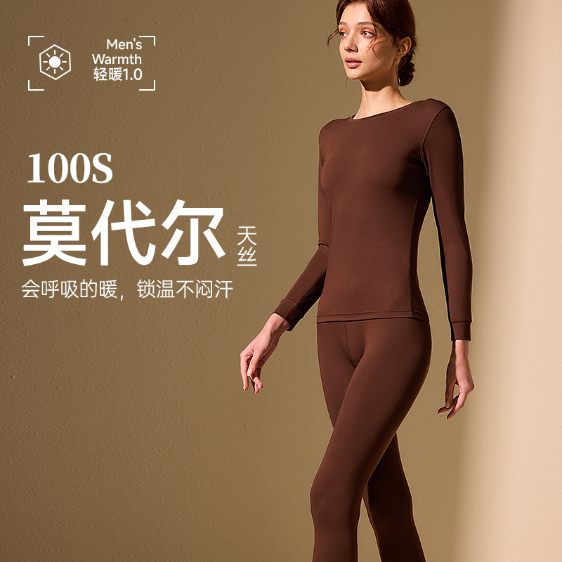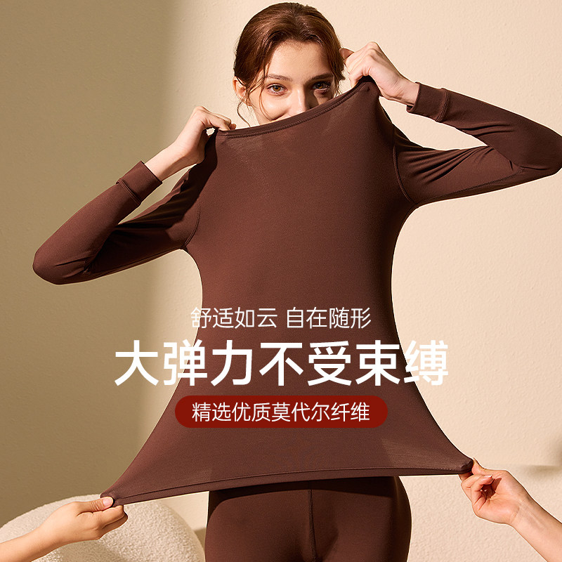 猫人莫代尔保暖内衣女士套装超薄打底圆领衣无痕修身秋衣秋裤冬季