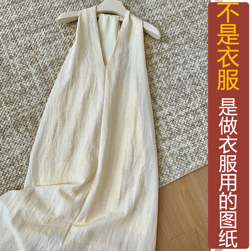 QW143夏季玉米色深V露背亚麻大摆长裙纸样新款连衣裙加工定制图纸
