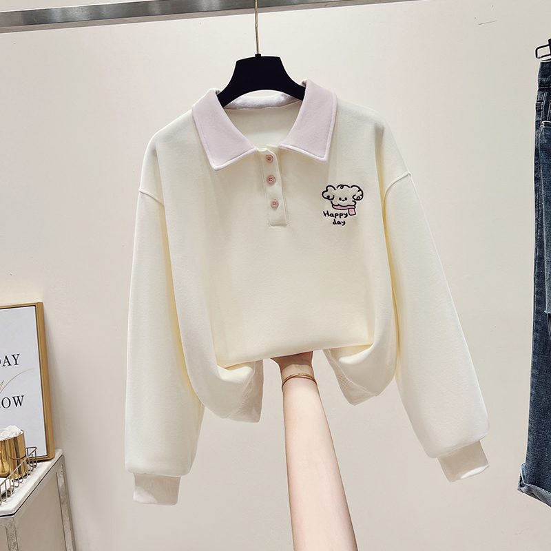 初中生甜美休闲学院风卫衣女宽松百搭高中学生长袖翻领上衣外套秋