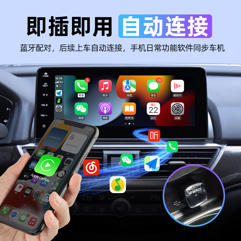 有线转无线苹果CarPlay盒子适用奔驰大众车机载HiCar华为Carlife