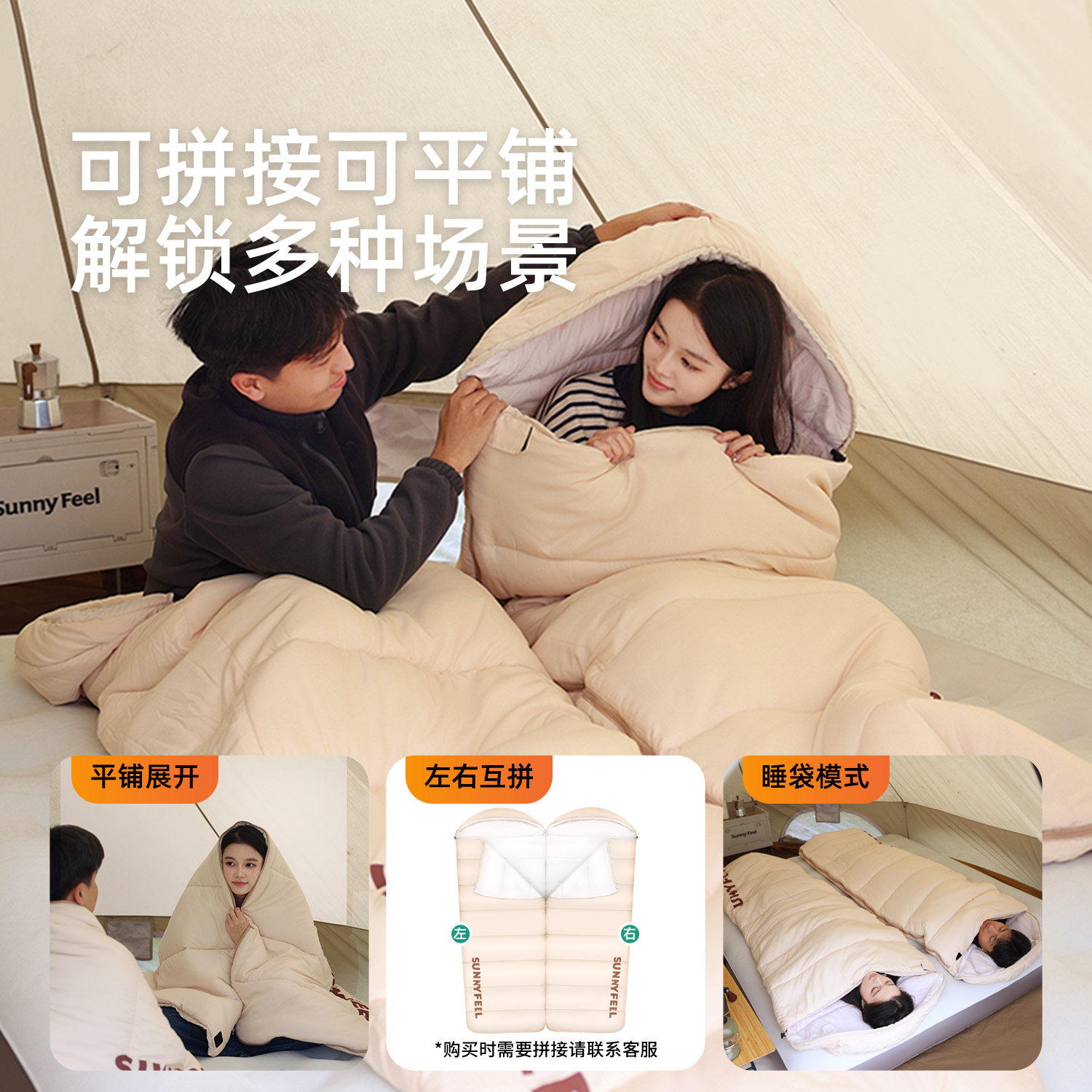 山扉睡袋成人冬季加厚防寒四季通用睡袋被子两用羽绒睡袋户外露营