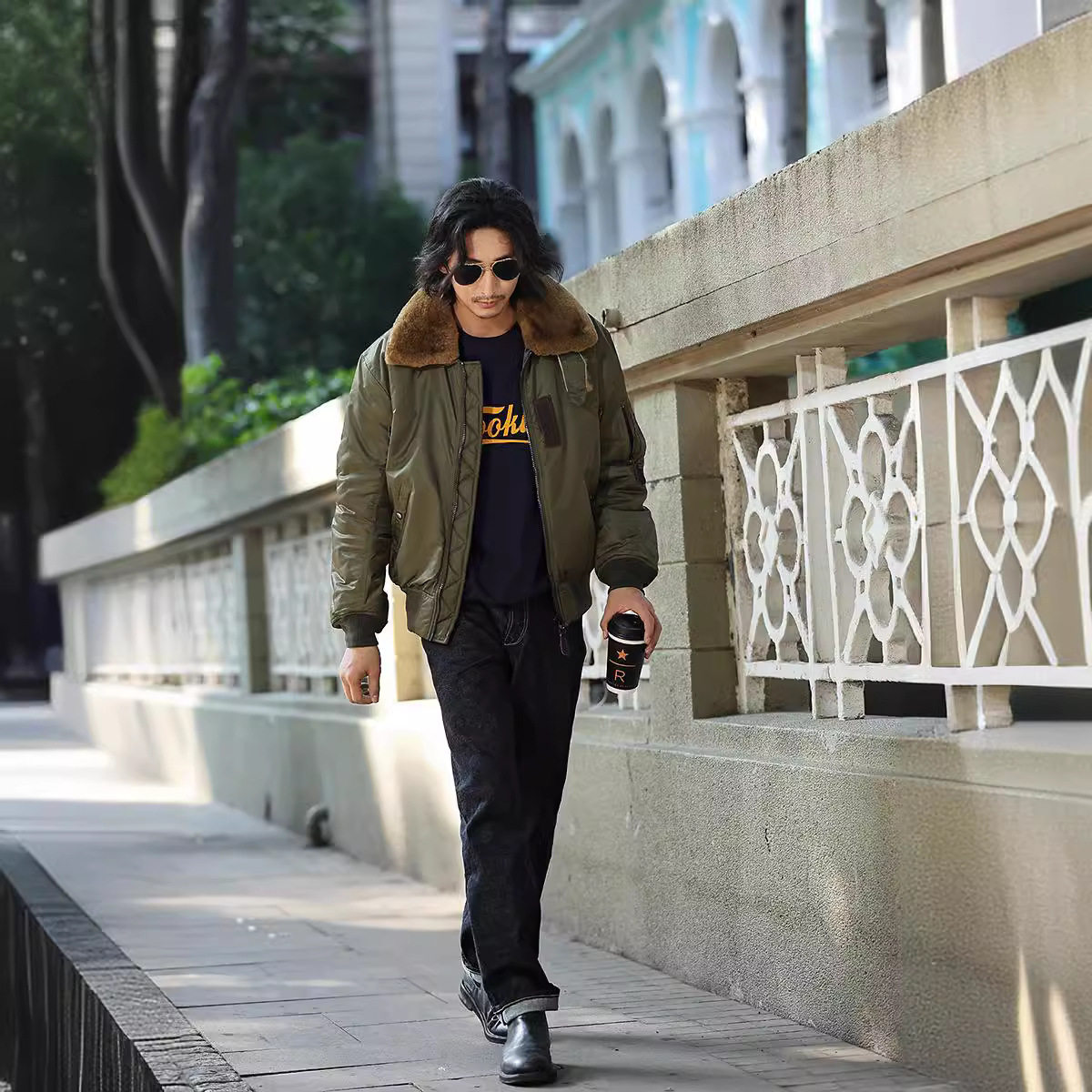 重磅纯棉空军夹克飞行服毛领可拆坦克服徽章棉服秋冬保暖纯棉外套