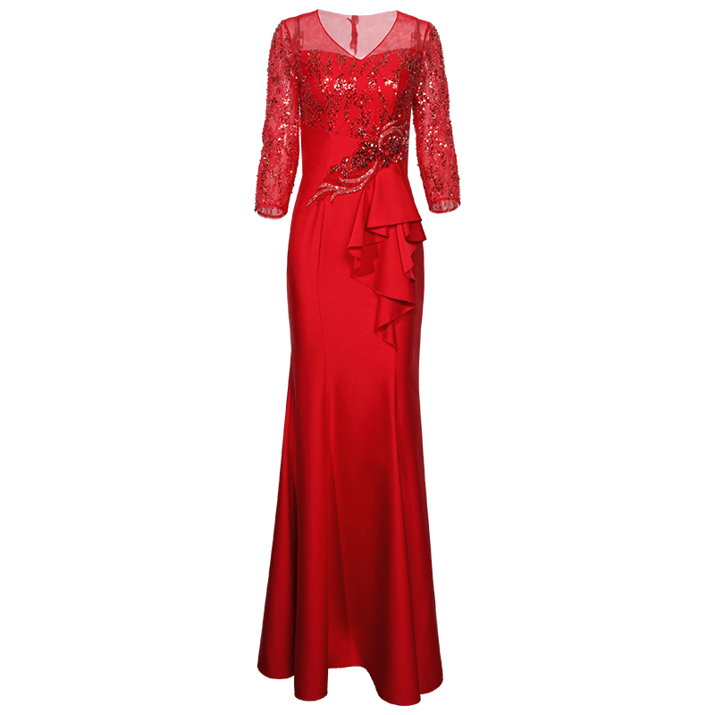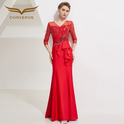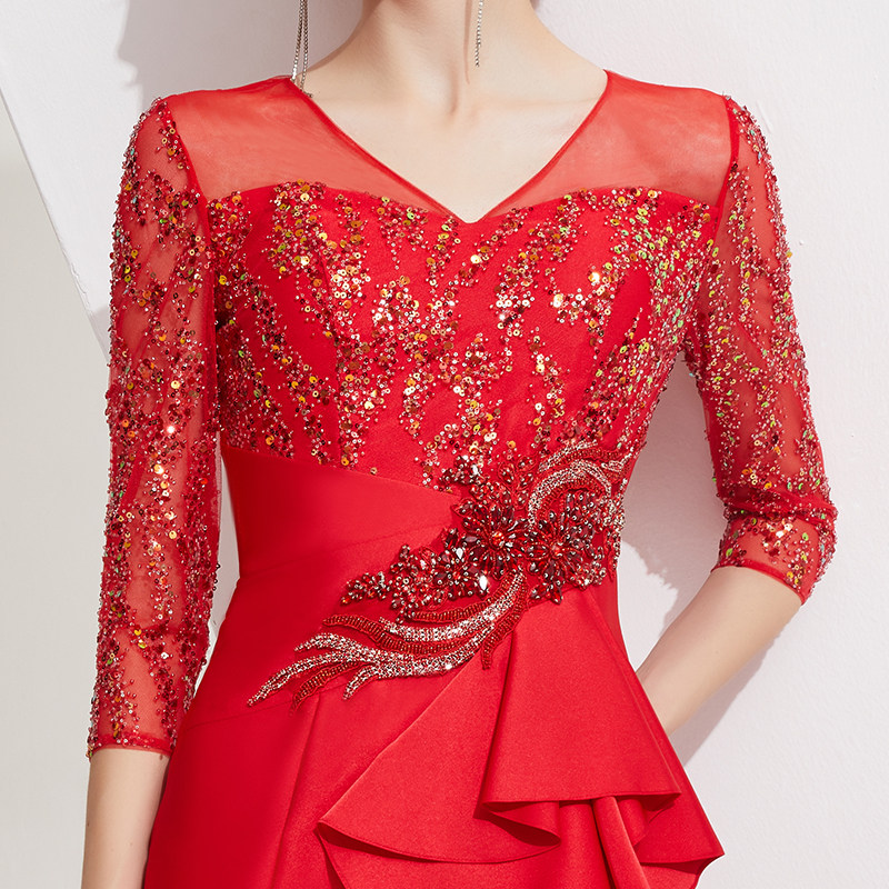 创意狐敬酒服新娘红色结婚礼服高端晚宴会礼裙长款气质端庄连衣裙