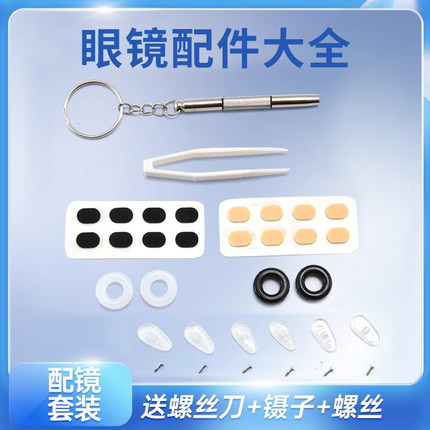 眼镜配件套装 超软气囊硅胶鼻托 防滑防压鼻垫 防滑圈 小螺丝刀