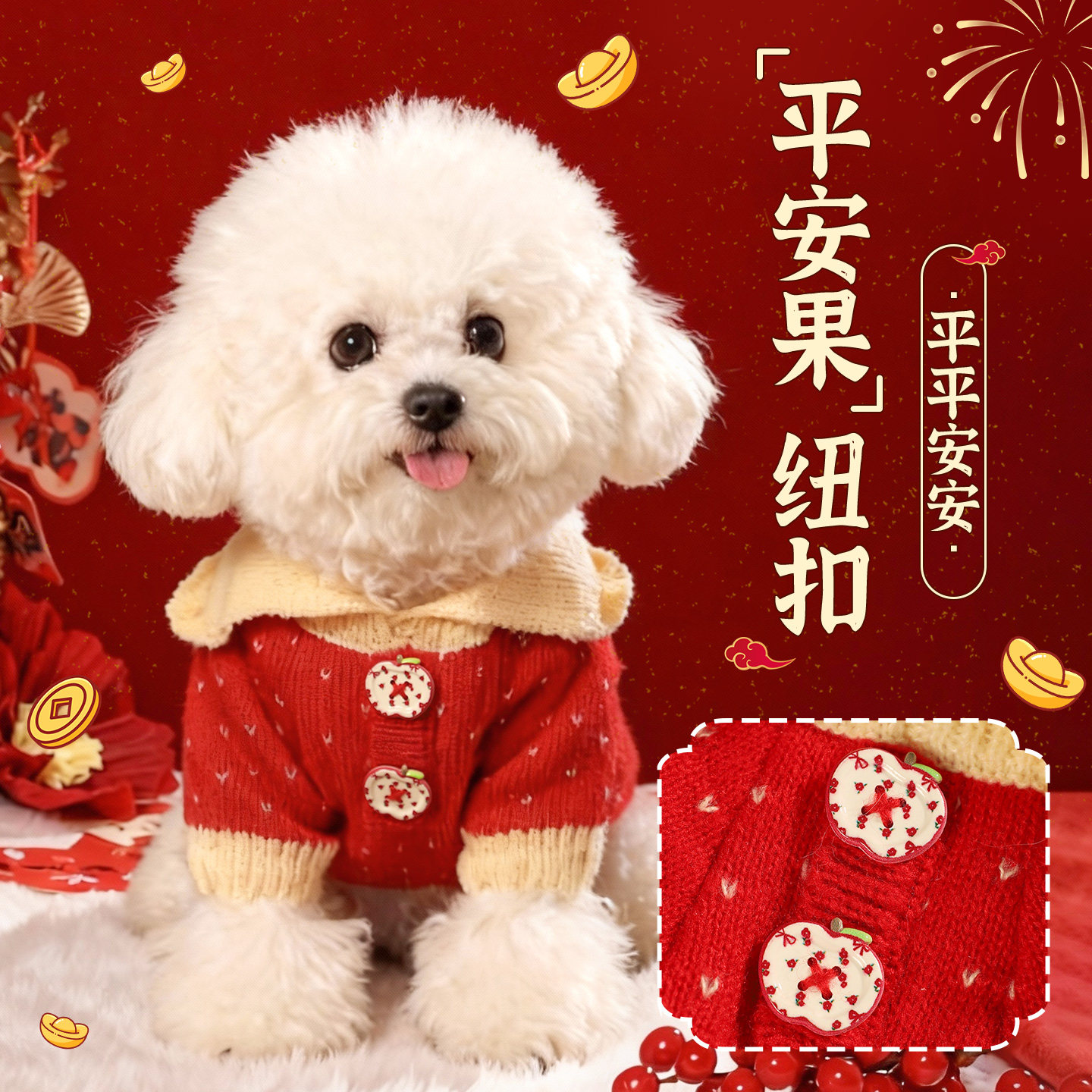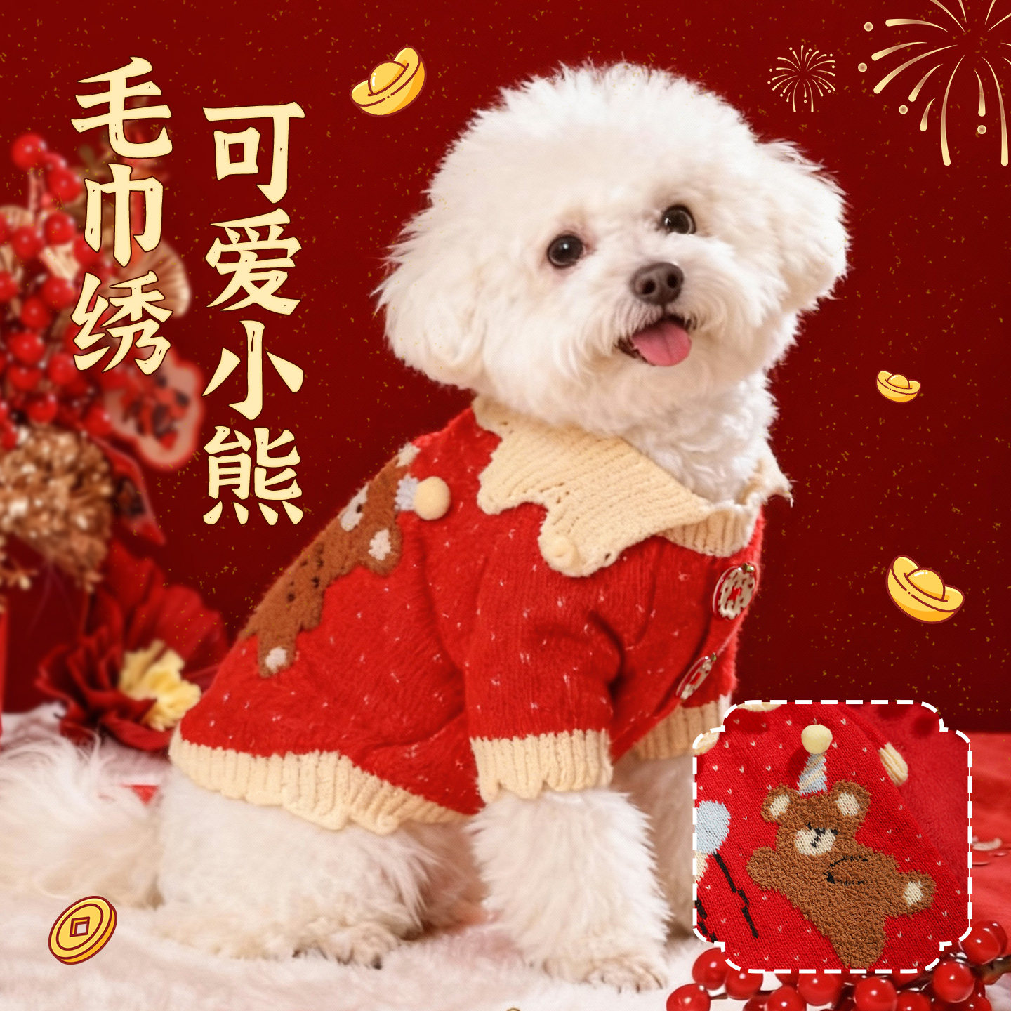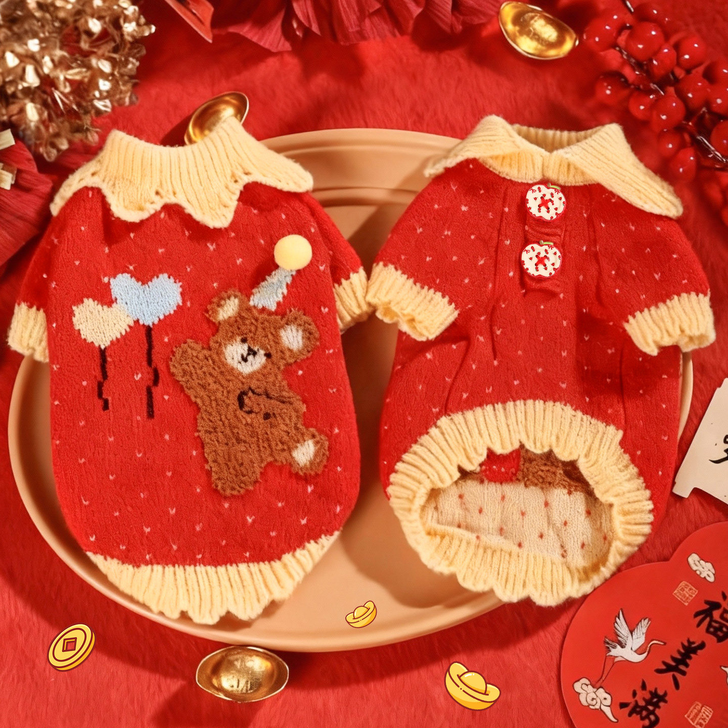 狗狗衣服新年冬装猫咪小型犬博美小狗泰迪比熊宠物过年喜庆毛衣