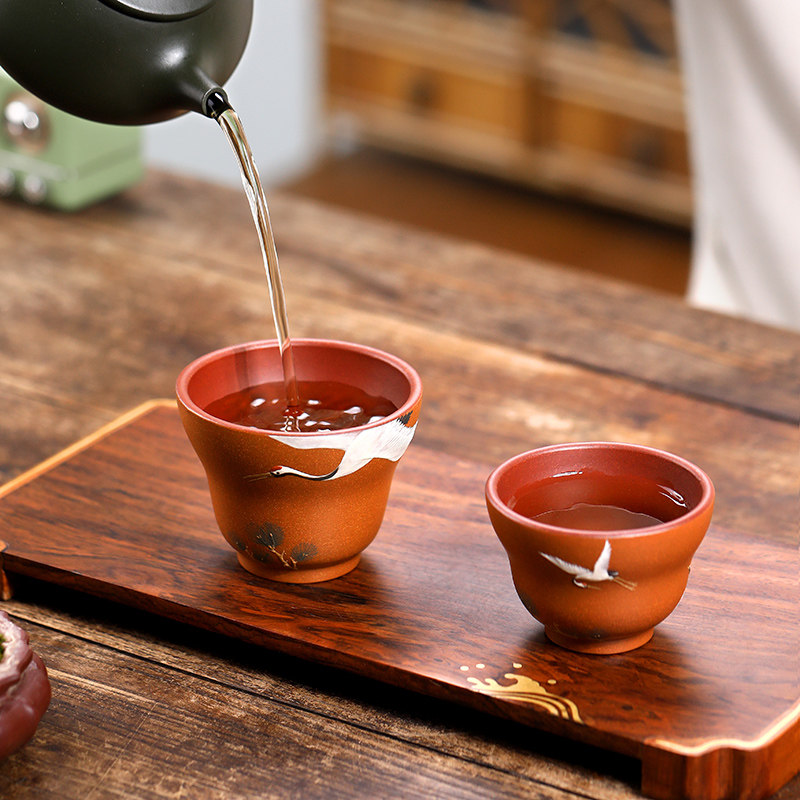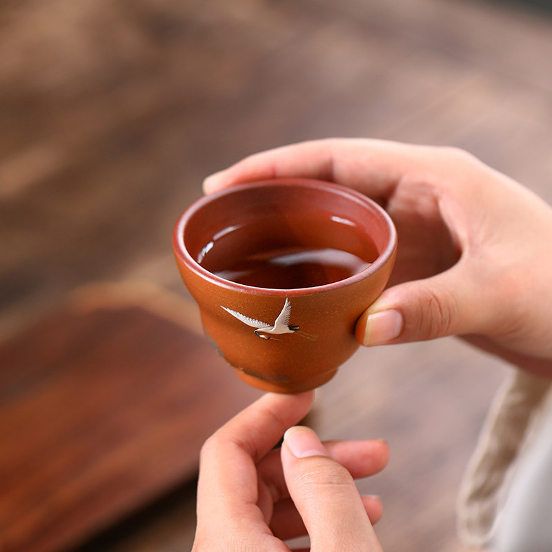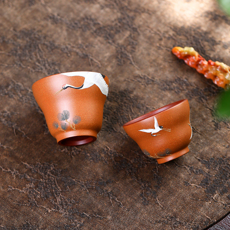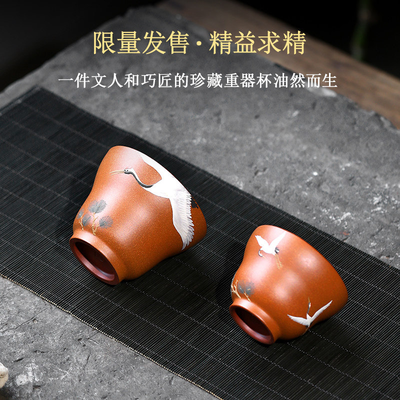名家泥绘范列匋斋紫砂品茗杯纯手工主人杯小单杯功夫茶杯 松鹤杯