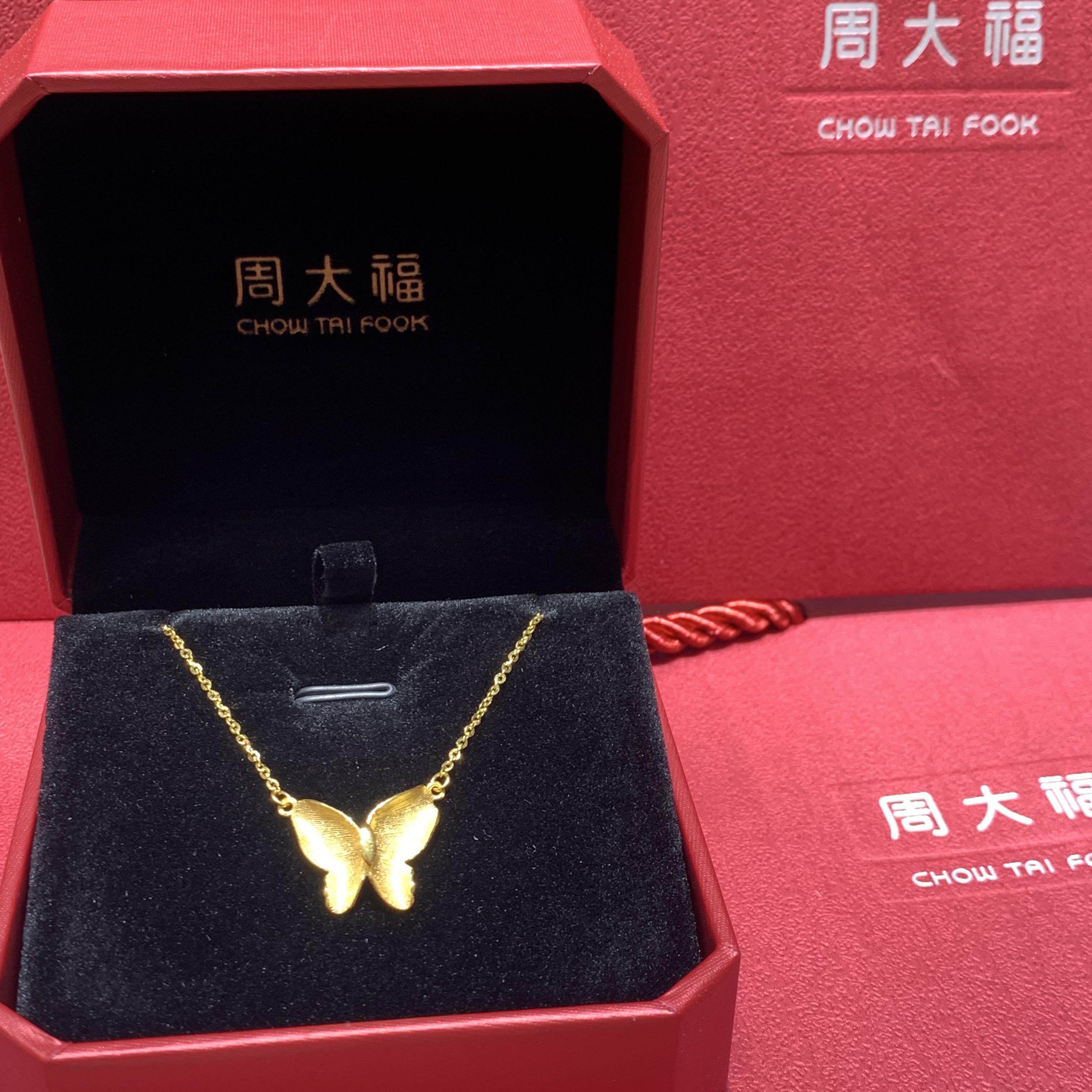 周大福代购 翩翩遇见你纹理拉丝蝴蝶黄金项链 克减80 计价F229869