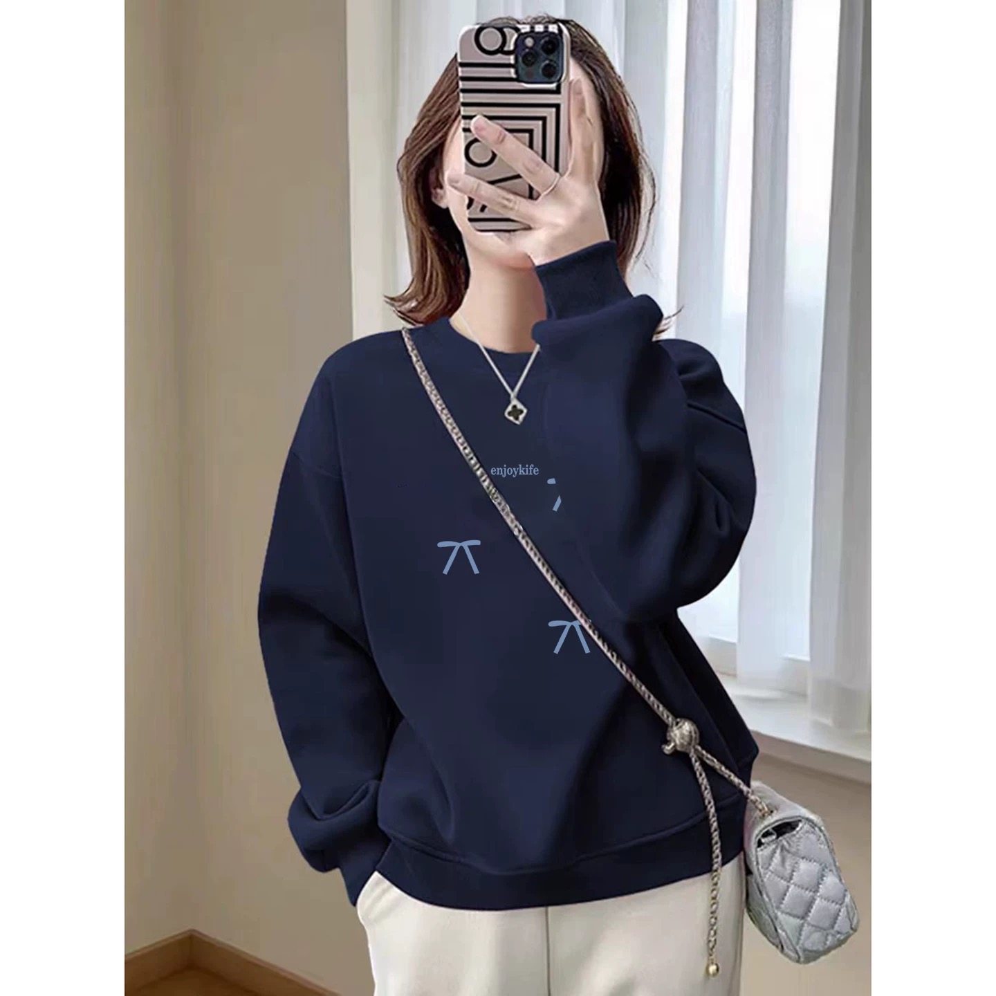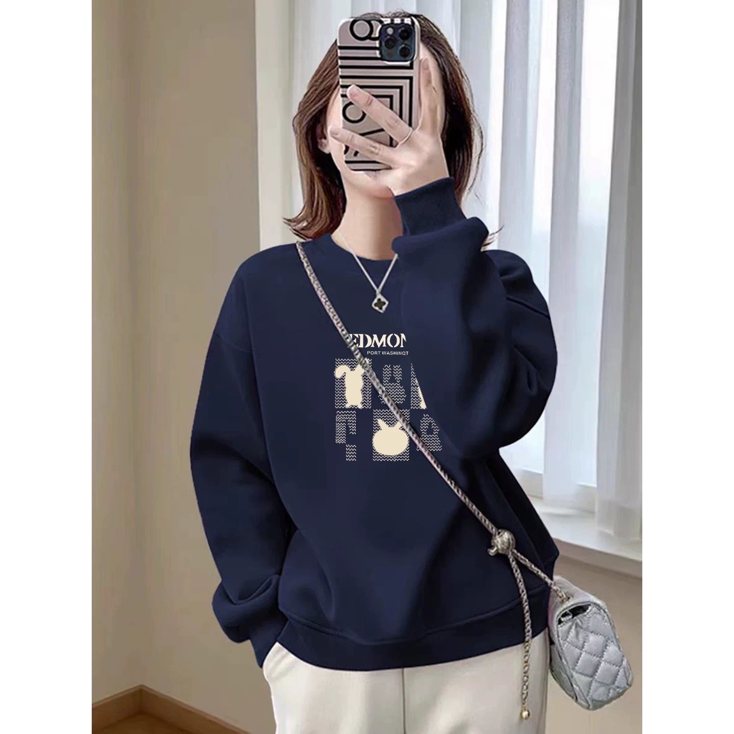 纯棉韩版圆领加绒加厚宽松卫衣女春秋冬休闲时尚百搭通勤长袖上衣