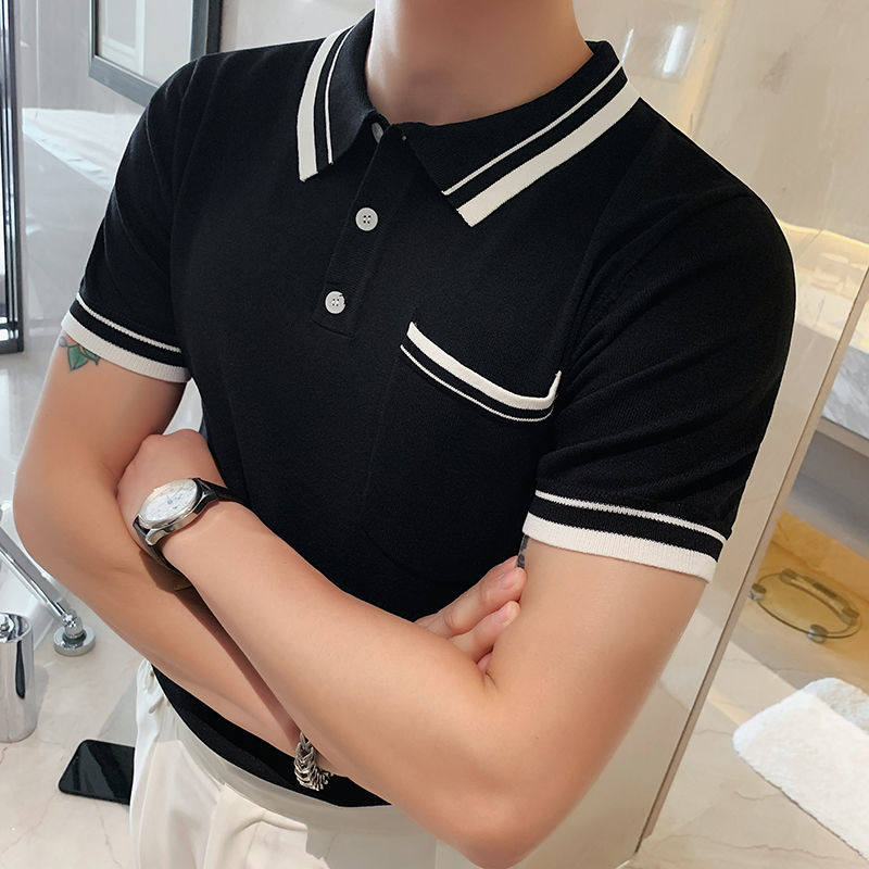 韩国英伦气质短袖POLO衫男韩版修身纯色半袖针织衫潮流翻领T恤男