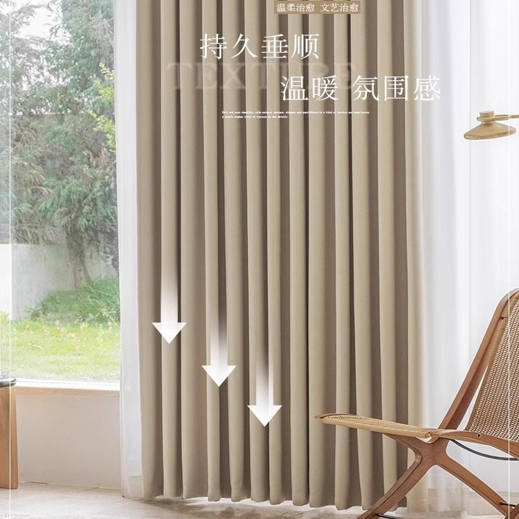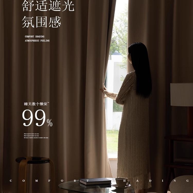 日式奶茶色窗帘遮光客厅卧室轻奢高级感奶油白2025新款遮阳布