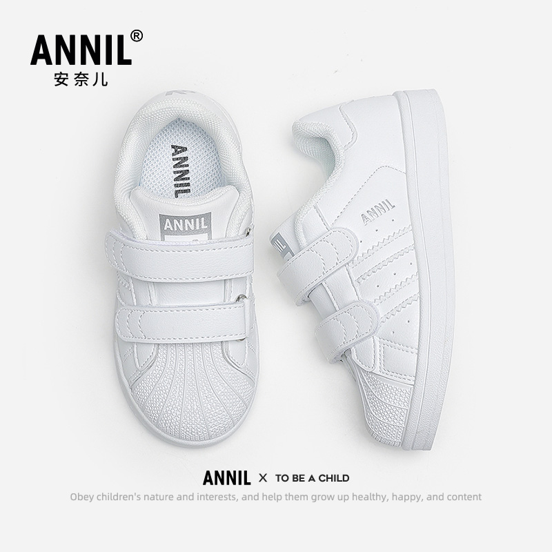 安奈儿儿童小白鞋2025新款春秋幼儿园宝宝女童白色板鞋男童运动鞋