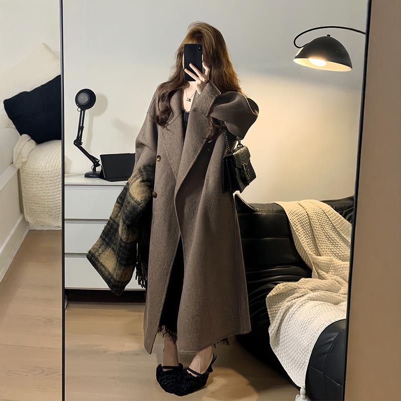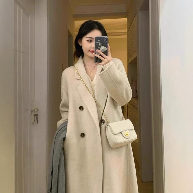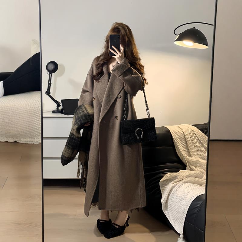 美拉德棕色双面羊绒大衣女2024新款中长款韩系宽松高级感羊毛外套