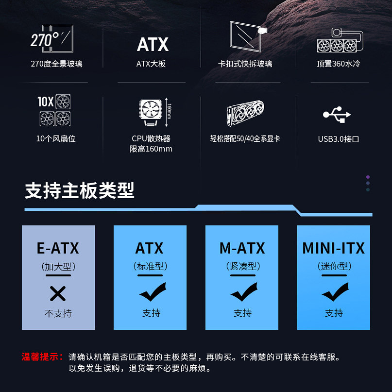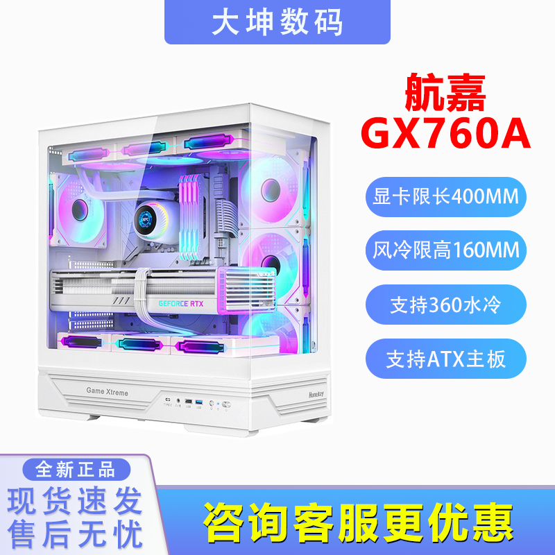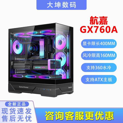 航嘉GX760A天选人机箱台式机ATX快拆水冷侧透无立柱海景电脑机箱