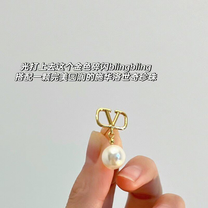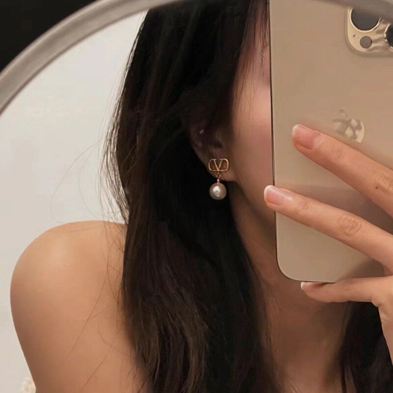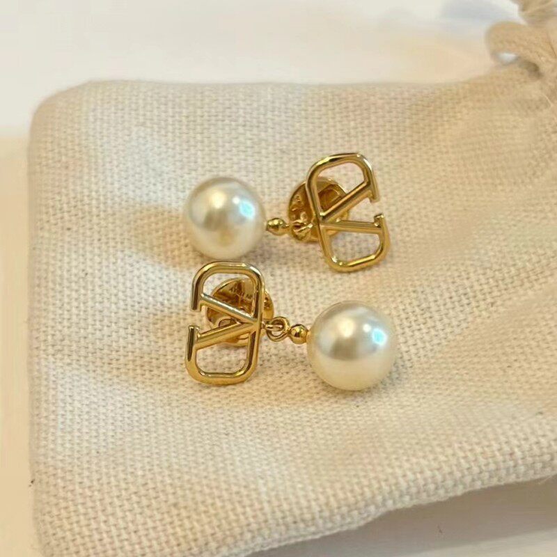 定制款黄铜镀金logo珍珠金属耳环明星同款时尚耳饰