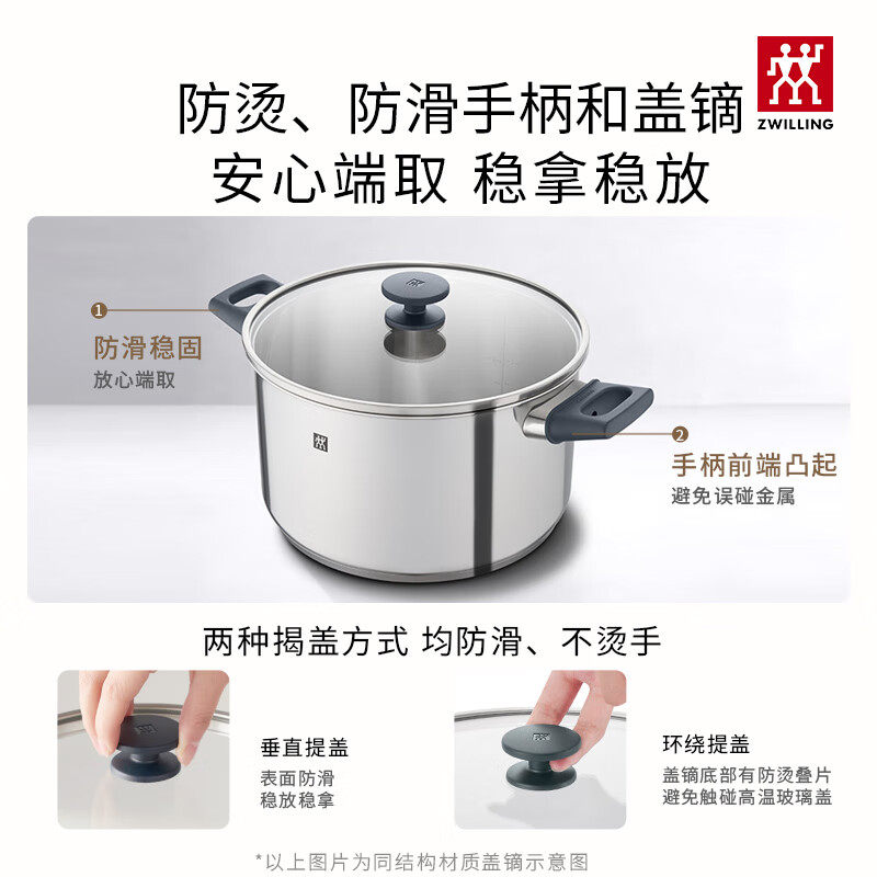 德国双立人不锈钢汤锅蒸笼家用大口径28cm炖锅深烧锅蒸屉炖汤蒸煮