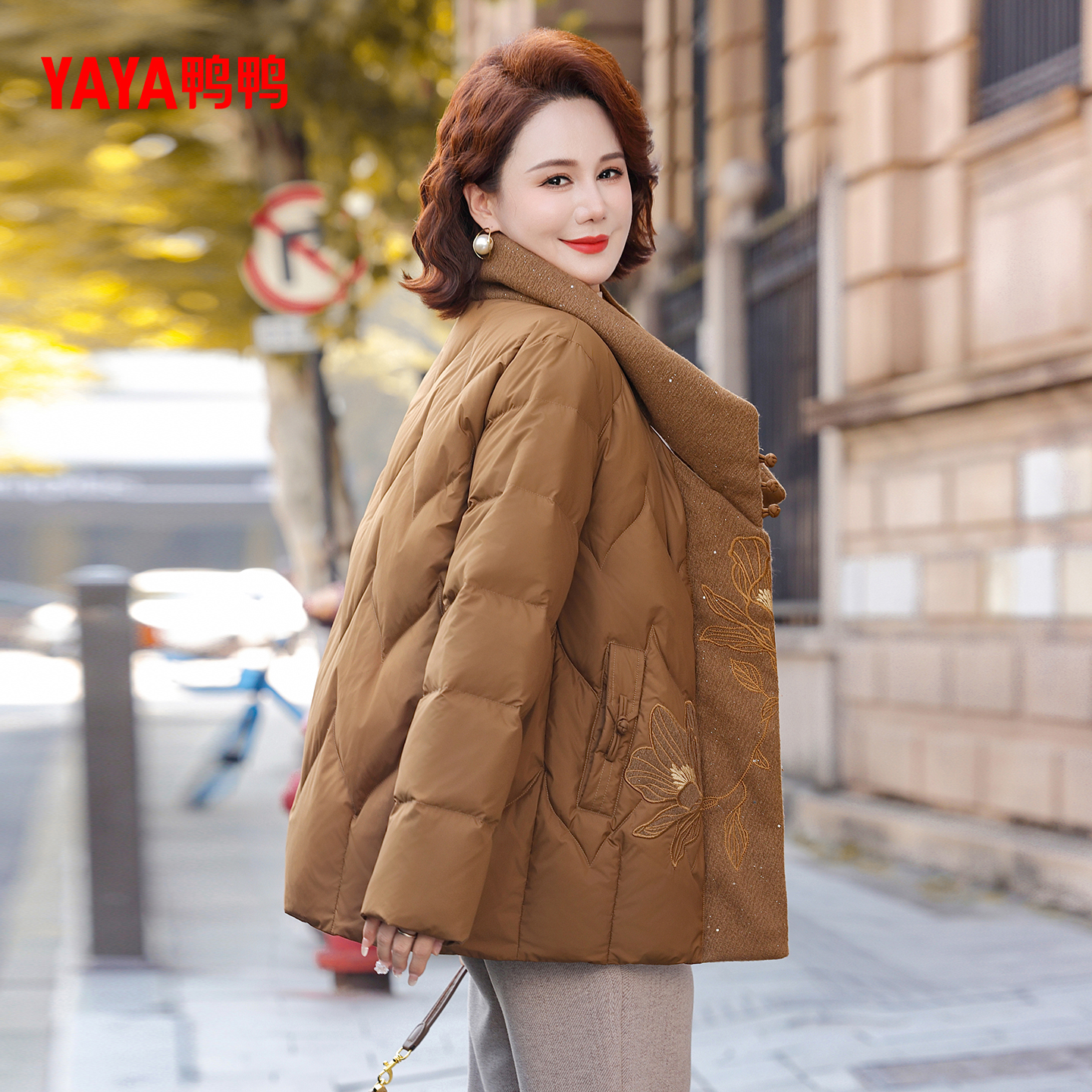 鸭鸭羽绒服女2025年冬季新款中老年短款时尚保暖气质妈妈装外套Y