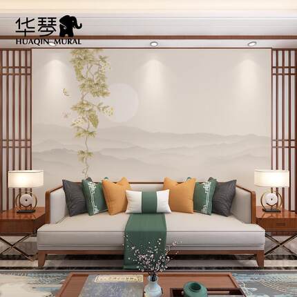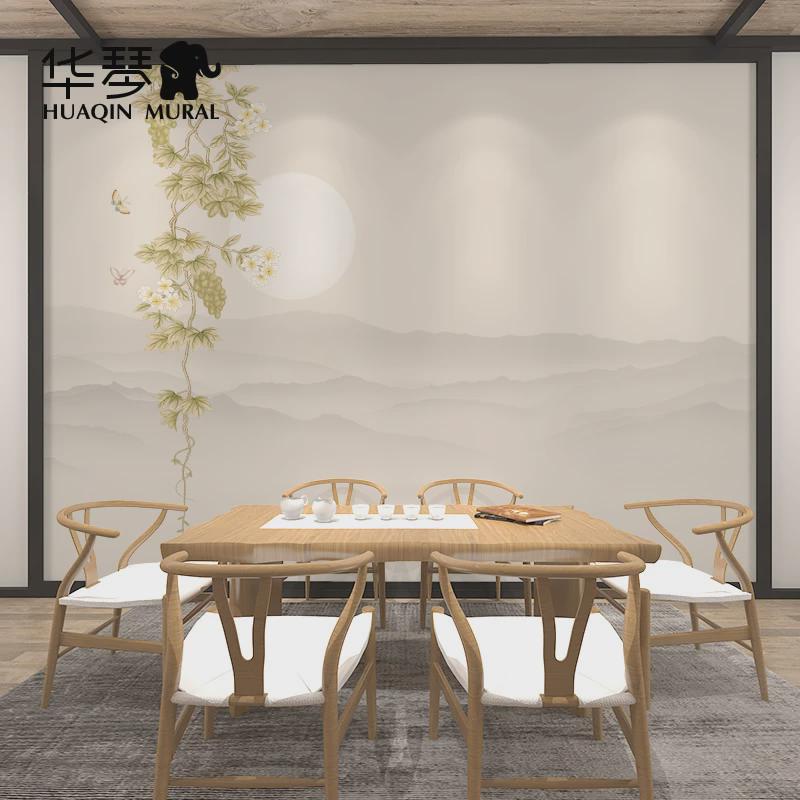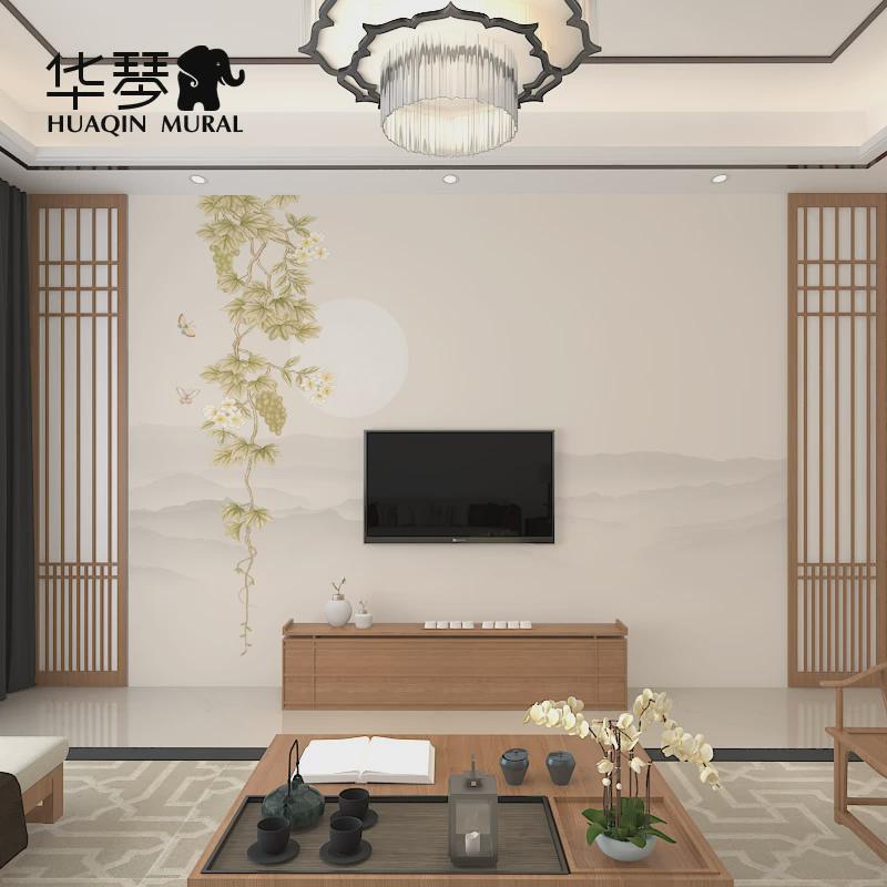 新中式电视背景墙壁纸客厅沙发卧室床头葡萄墙纸多子多孙墙布壁布