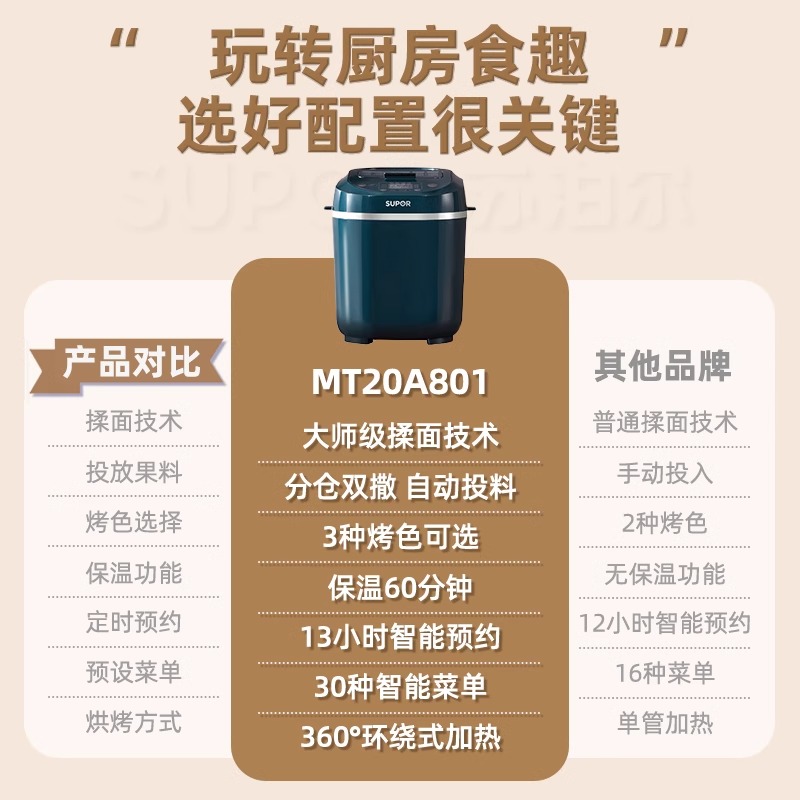 苏泊尔面包机家用全自动揉面和面发酵馒头机蛋糕机搅拌机厨师机