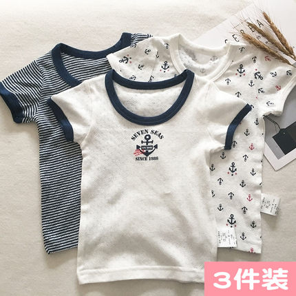 3件价格男童网眼短袖纯棉夏薄款透气宝宝睡衣家居服T恤全棉无荧光