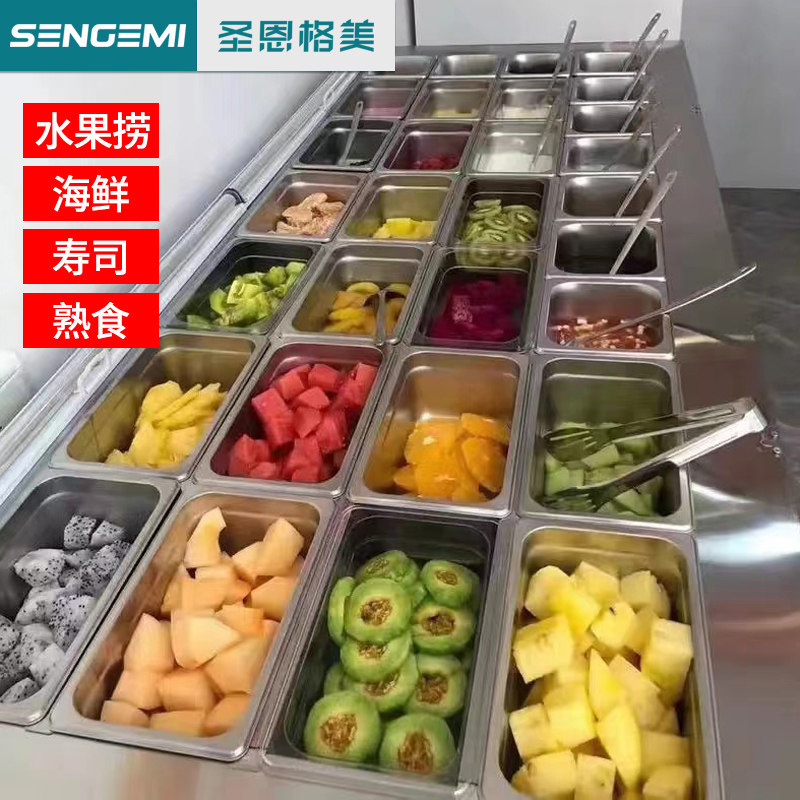圣恩格美海鲜冰台展示柜熟食点菜柜饭店自助餐冷藏水果捞展示柜