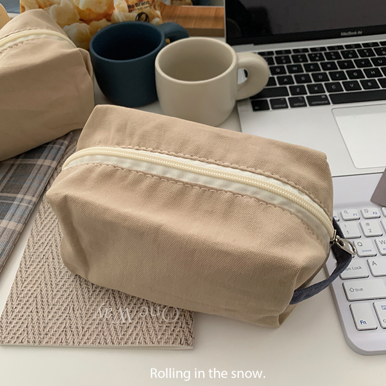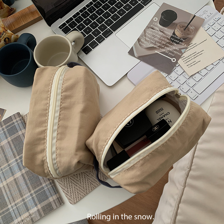 温柔卡~ins风简约便携式帆布化妆包手拎女旅行收纳耳机包洗漱包