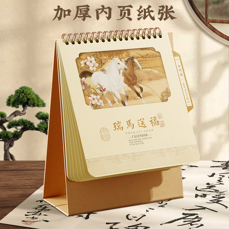 2026年新款台历国风桌面摆件日历计划本创意国学文化精美原创设计竖款小记事本月历公司企业广告定制可印logo