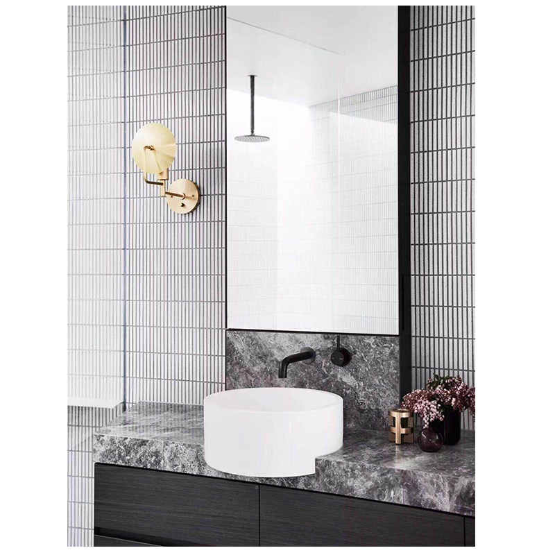 蓝白色细长条马赛克窑变软瓷砖背景墙吧台圆弧包柱子条形筷子砖