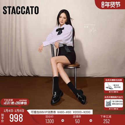 杨幂同款思加图新款曜金爵士英伦风复古乐福鞋小皮鞋EGB55AA6