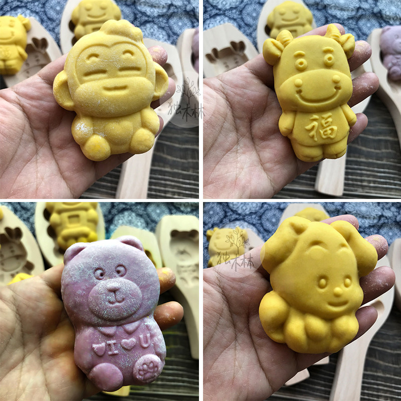 过年卡通做馒头中秋月饼模具木质立体蒸糕烘培青团家用辅食品级
