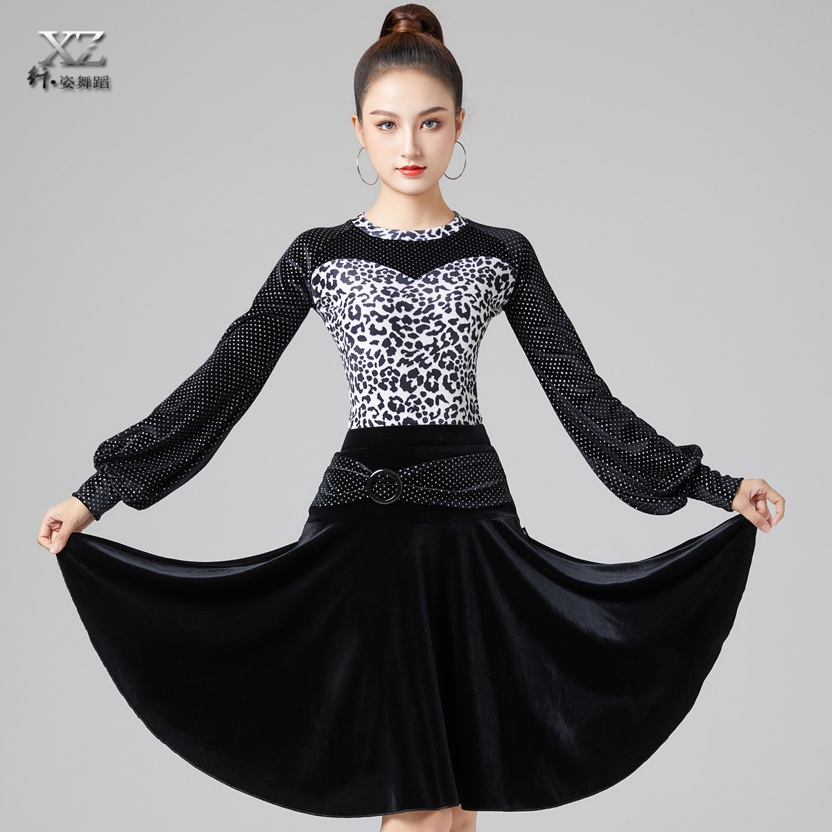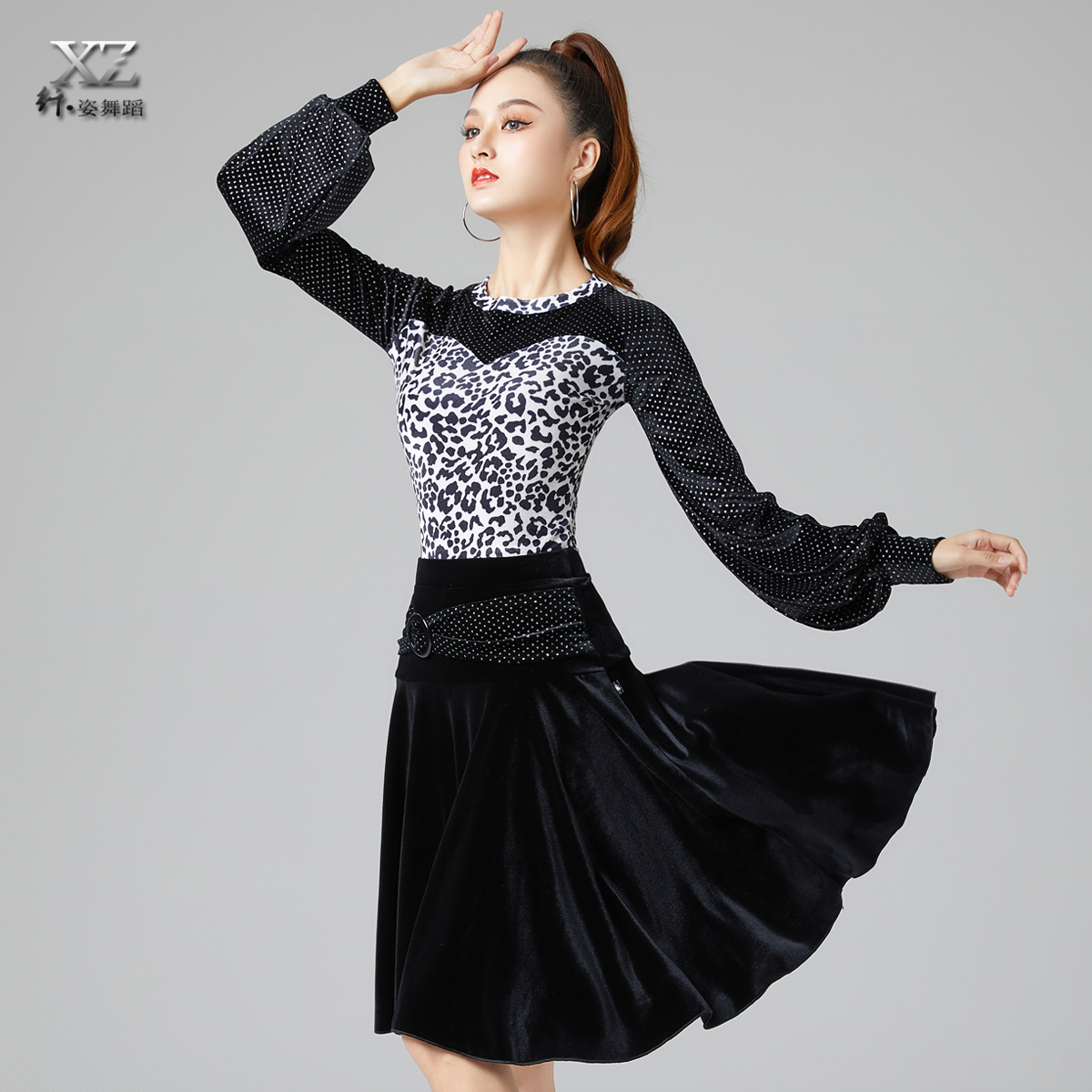 拉丁舞秋冬款新款长袖上衣专业舞蹈服摩登舞跳舞服装成人女练功服