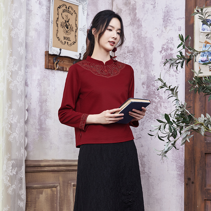 布符冬款唐装旗袍上衣复古时尚绣花改良中式长袖女传统中国风
