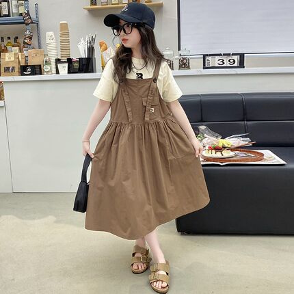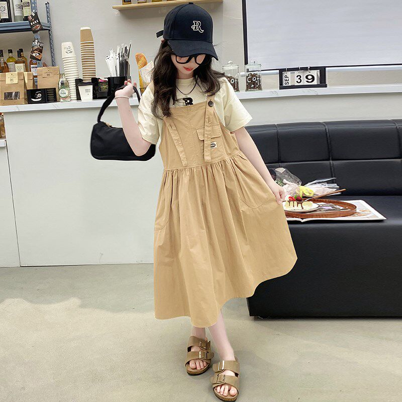 女童背带裙套装夏装2024新款韩版洋气女大童夏季儿童装裙子两件套