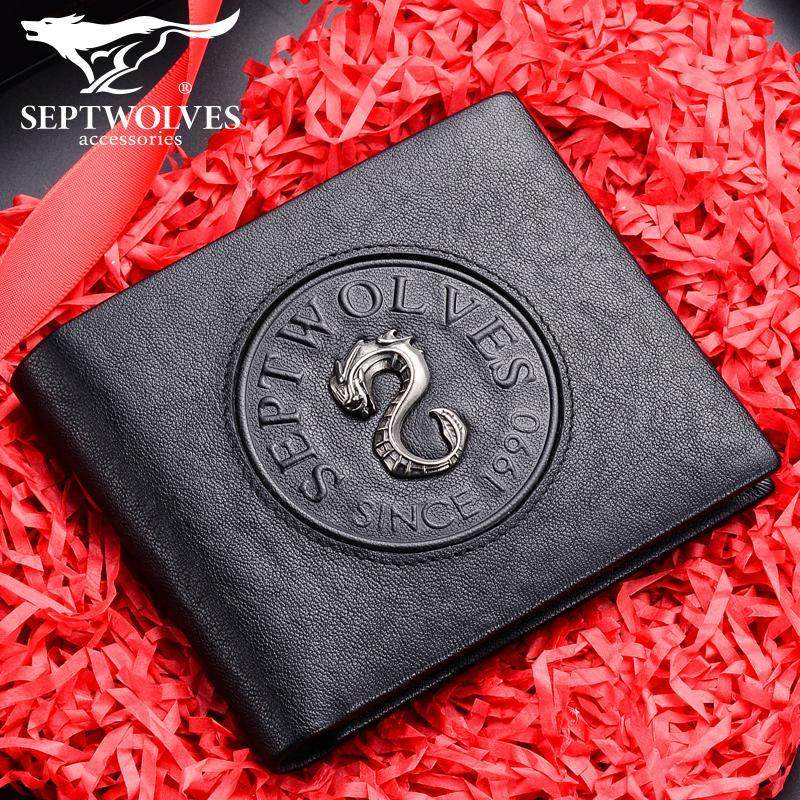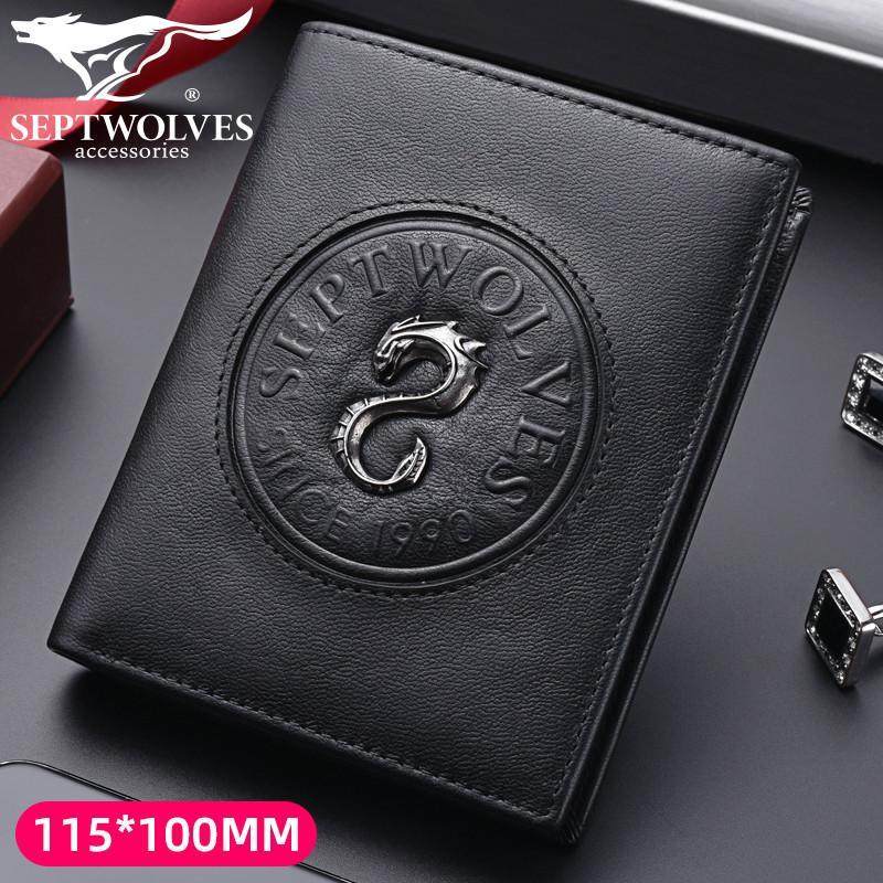 正品七匹狼男士真皮钱包2025款高档潮款龙图腾钱夹横竖款青年皮夹