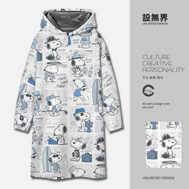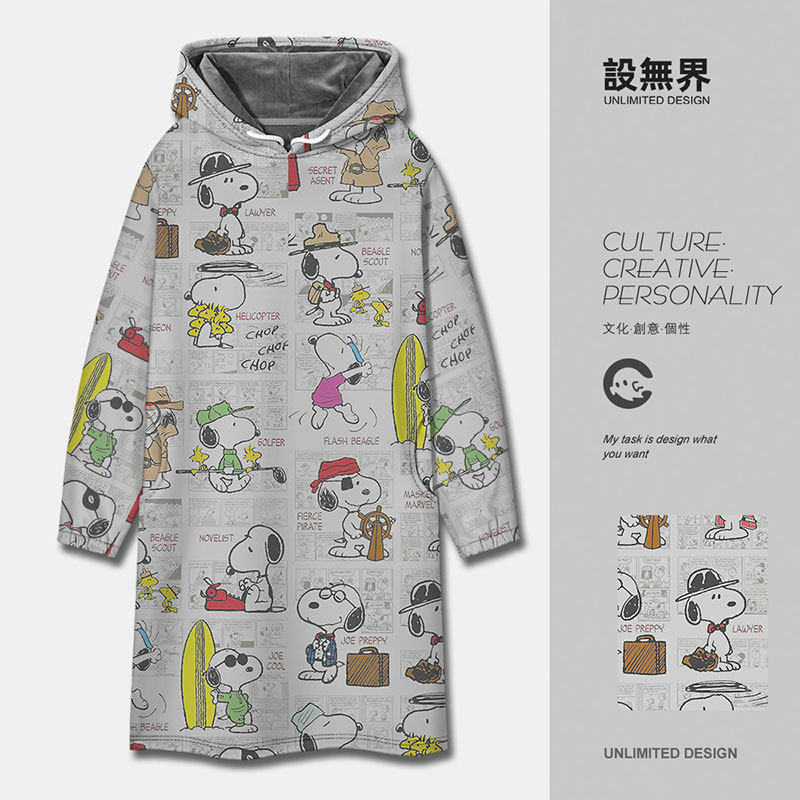 可爱卡通史努比复古拼接联名个性中长款卫衣裙女外穿0017设 无界