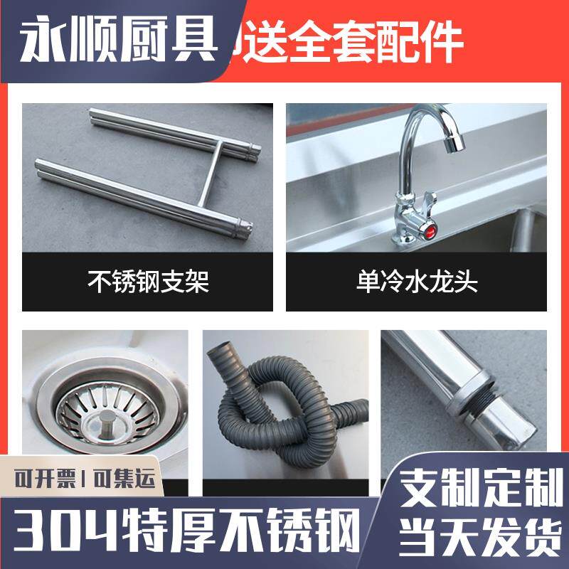 304不锈钢水槽厨房支架商用饭店洗衣台洗菜盆洗碗池带平台洗刷盆
