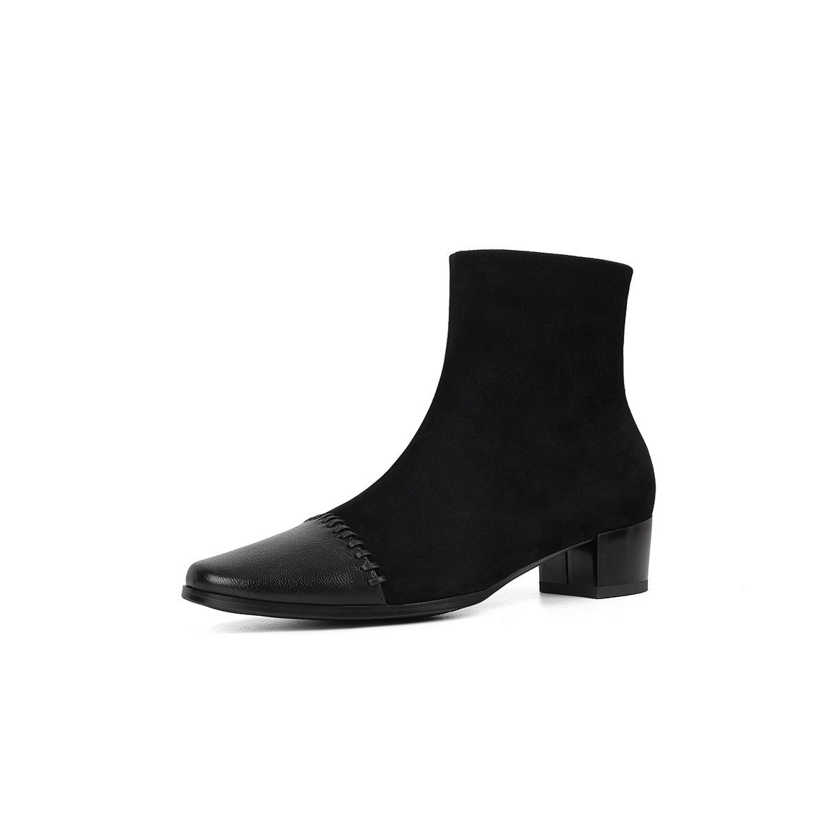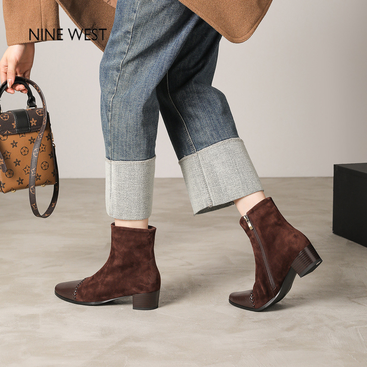 奥莱专供Nine West/玖熙粗跟咖色切尔西女靴高跟鞋子短靴真皮靴子