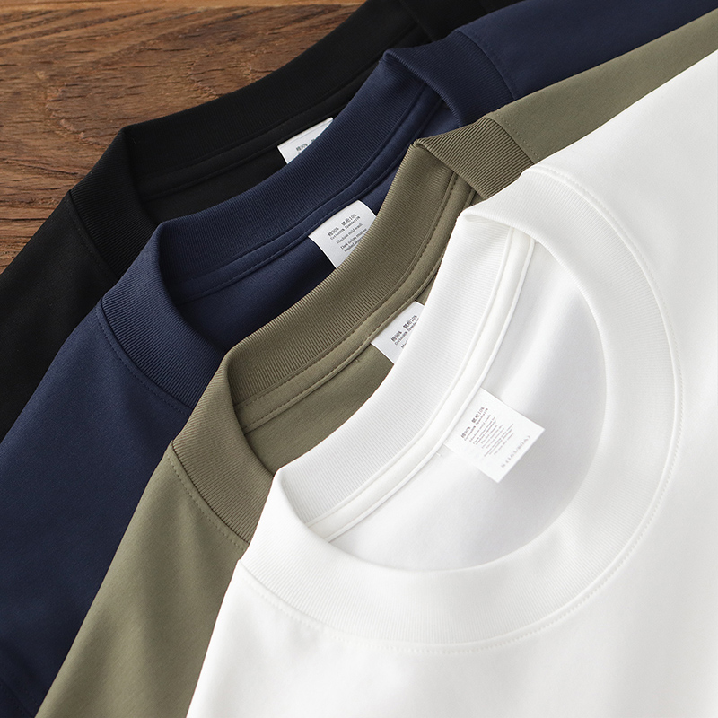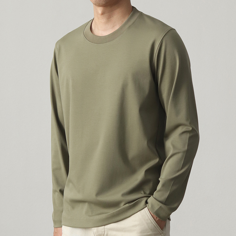 250G双面丝光棉长袖t恤男打底衫纯色圆领体恤高品质柔软秋季上衣