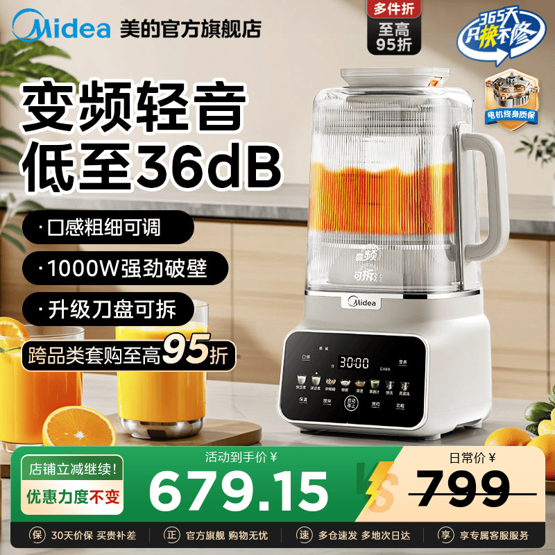 美的变频轻音安睡破壁机豆浆机