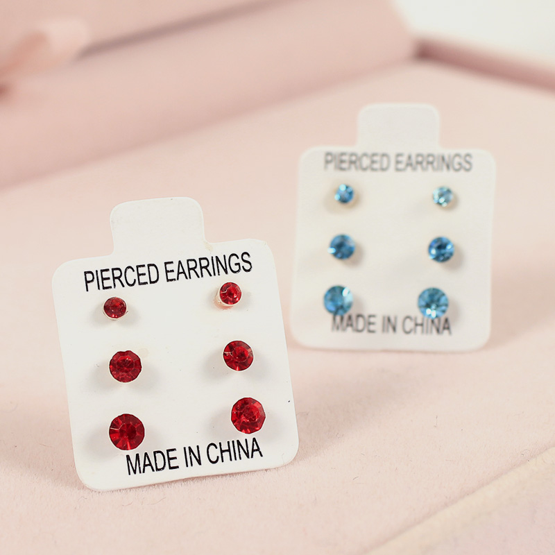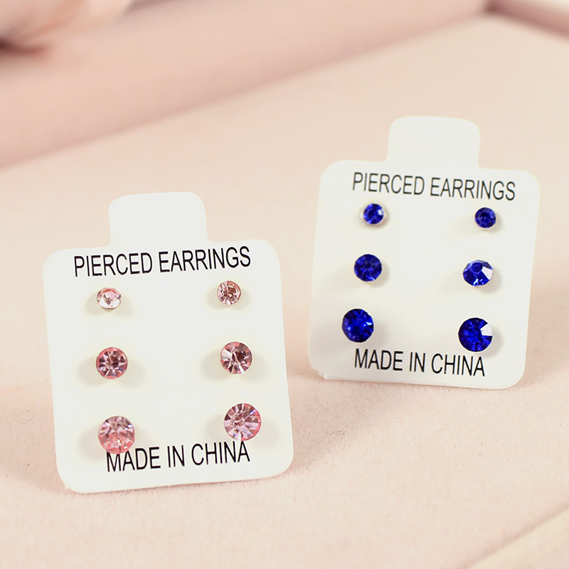 迷你钻石塑料小耳钉女气质韩国简约防过敏个性百搭学生耳饰 3对装