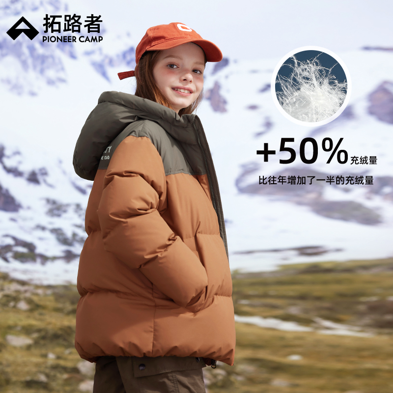 拓路者儿童羽绒服冬季防风防寒加厚衣服中大童连帽外套90白鸭绒袄