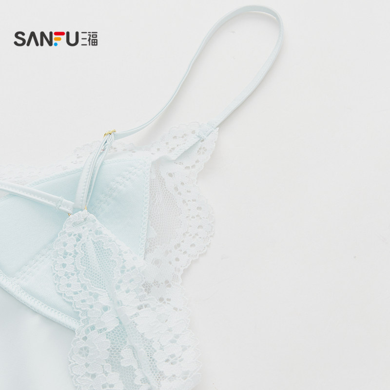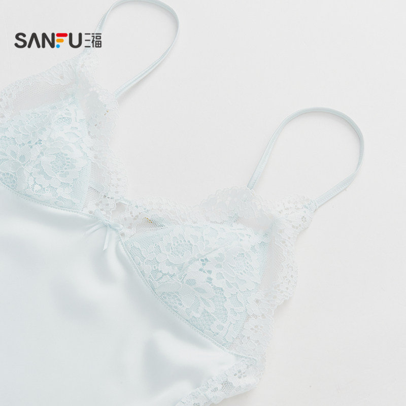 三福女春季蕾丝缎面裙 纯欲优雅性感风丝滑睡裙家居服513235
