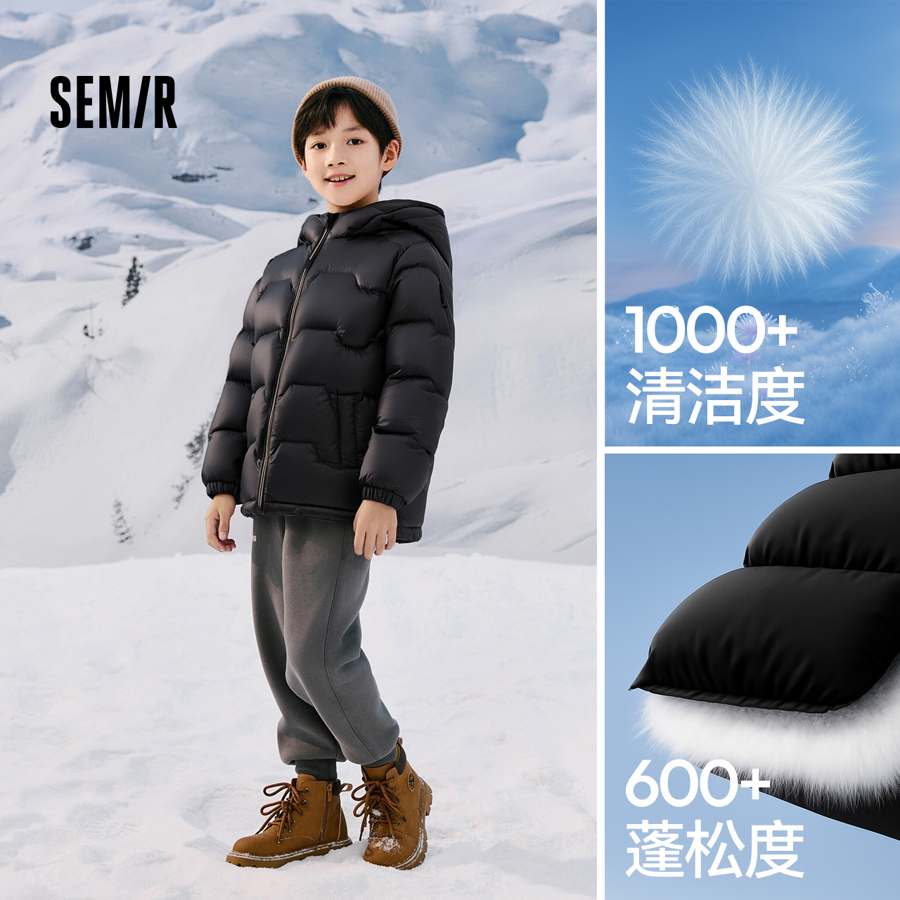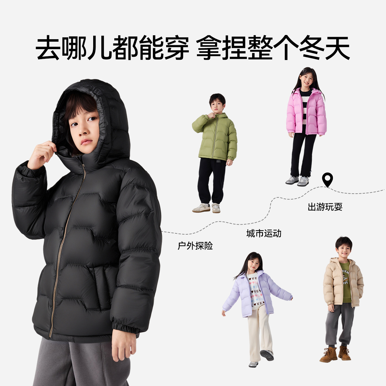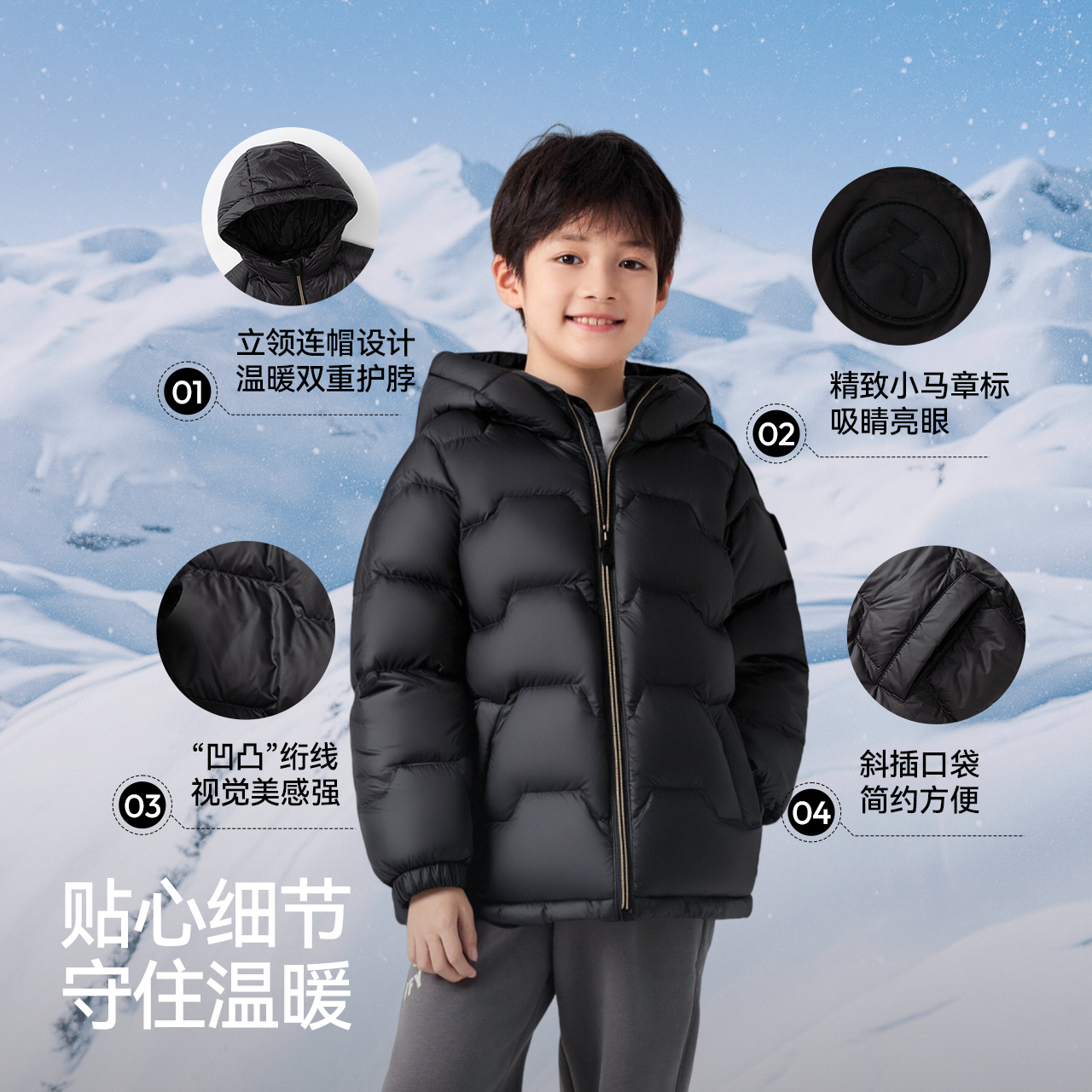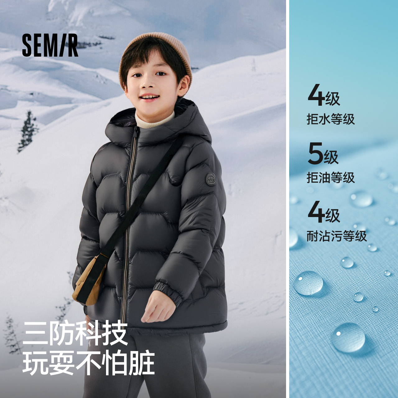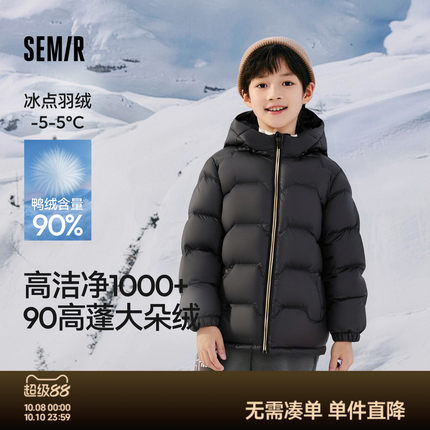 森马儿童羽绒服三防外套保暖加厚连帽冬装纯色百搭男童女童防寒服