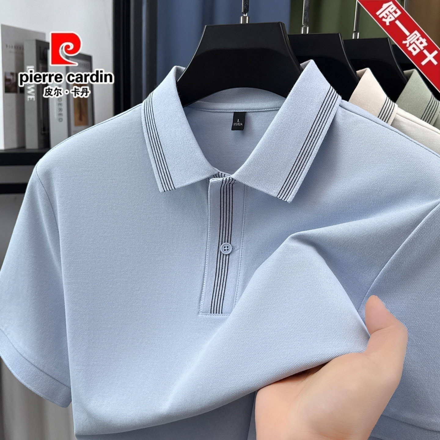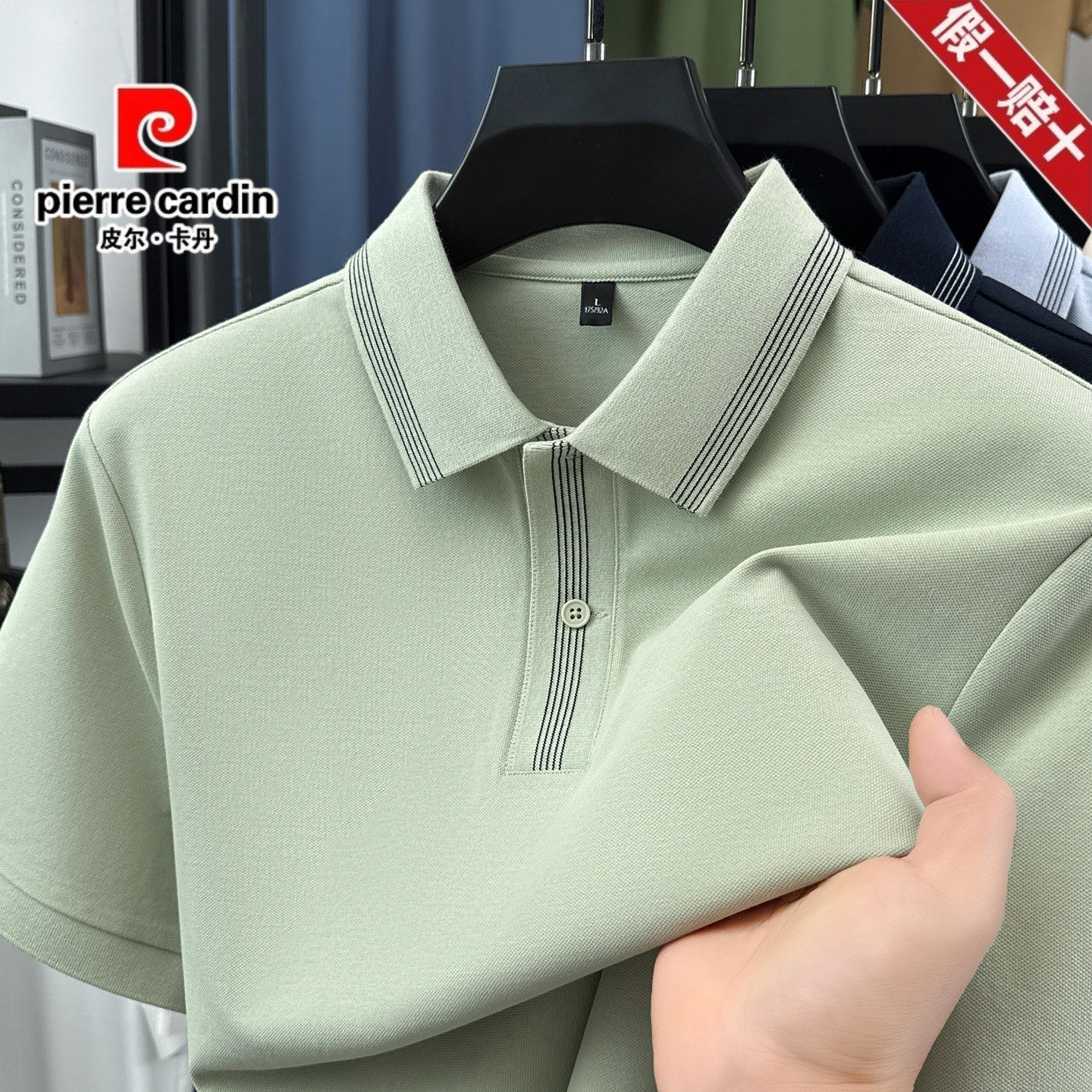 皮尔卡丹男士棉质POLO衫2026新款短袖T恤纯色百搭翻领珠地棉上衣